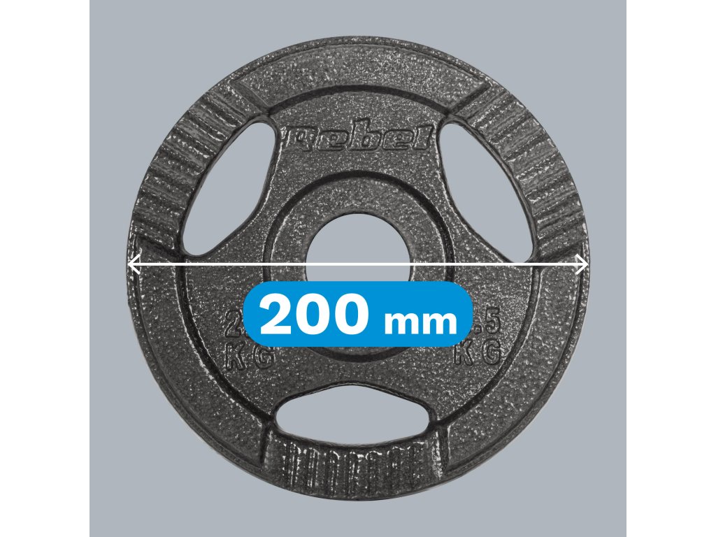 Set lijevanih utega Rebel Active sastoji se od 4 tanjura težine 2,5 kg svaki, što omogućuje prilagodbu treninga vašim sposobnostima. To je idealno rješenje za trening snage, jačanje mišića ili intervalni trening za početnike i napredne. Lijevana konstrukcijaTanjuri u setu RBA-2143 izrađeni su od lijevanog željeza, što ih čini idealnim izborom za one koji traže trajnu opremu za trening snage. Lijevano željezo osigurava ne samo otpornost i veću otpornost na oštećenja, nego osigurava i stabilnost tijekom treninga. 3 profilirane ručke