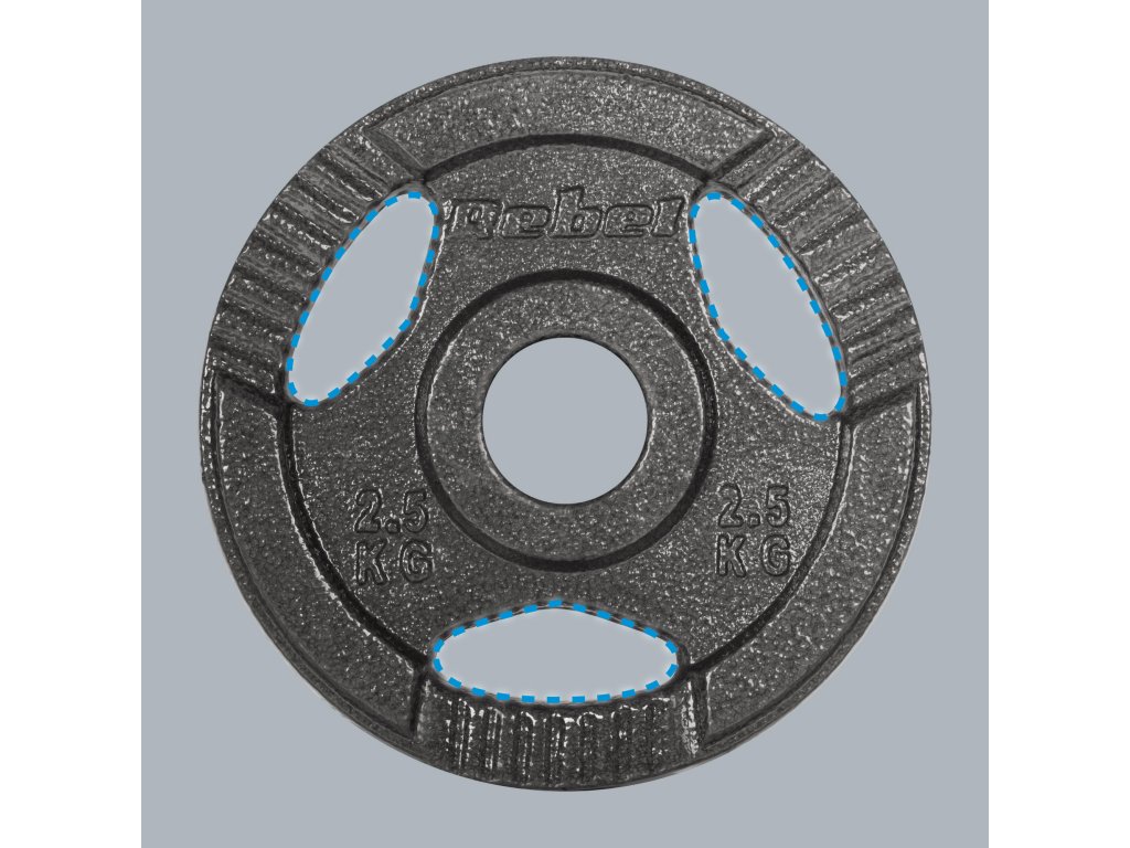 Lijevani utezi Rebel Active imaju tri prikladno profilirane ručke, koje omogućuju izvođenje raznih vježbi snage bez potrebe za dodatnom opremom. Zbog kompaktnih dimenzija i ergonomskog oblika tanjura, njihovo skladištenje i transport su vrlo jednostavni.Olimpijski tanjuriSet Rebel Active omogućuje treniranje podizanja i čučnjeva koristeći same utege. Također možete staviti utege na šipku. Tanjuri imaju veće otvore od tradicionalnih utega, što omogućuje njihovu upotrebu s većinom olimpijskih šipki. Otvor tanjura u setu RBA-2143 prilagođen je standardu olimpijskih šipki i ima 51 mm.Broj utega u setu: 4