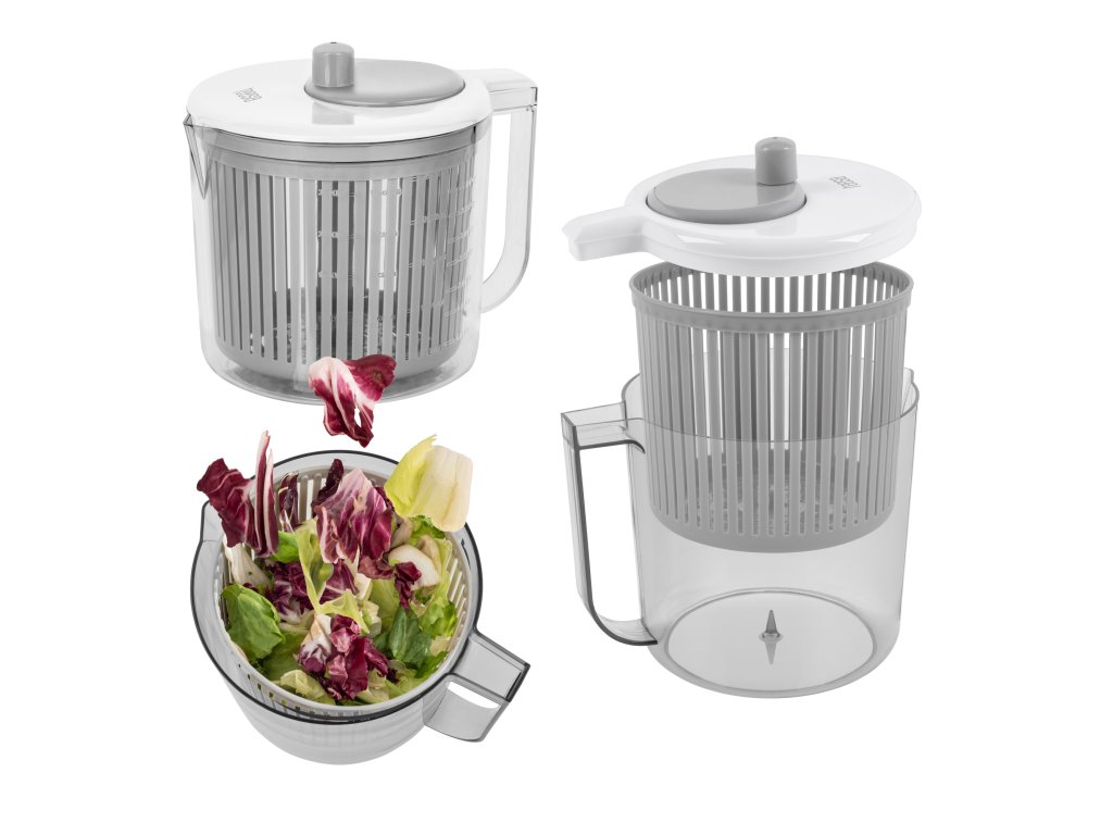 Dehidrator za salatu Teesa svojim jednostavnim, ali funkcionalnim dizajnom poslužit će vam u mnogim situacijama. Prozirna posuda s udobnom ručkom olakšava uklanjanje viška ocijeđene vode iz povrća bez potrebe za dizanjem poklopca. Nakon uklanjanja dijela za salatu, posuda može poslužiti i za druge namirnice. Zahvaljujući mjernoj skali sa strane, ne trebate dodatnu posudu za mjerenje sastojaka. S druge strane, unutarnji dio sušilice možete koristiti i kao sito.