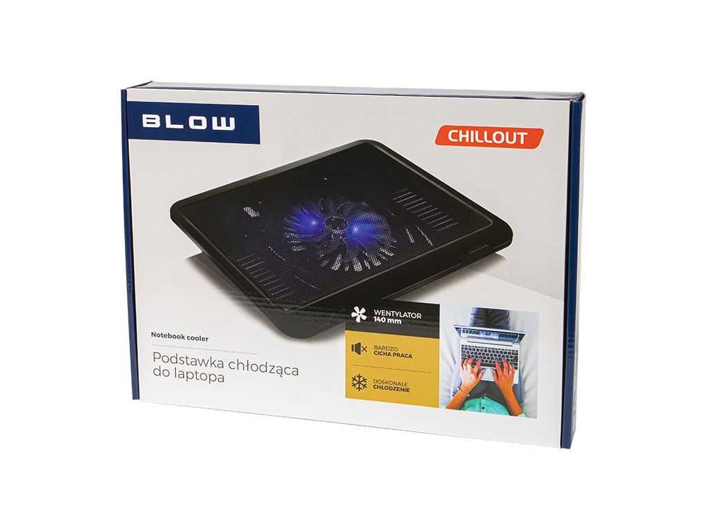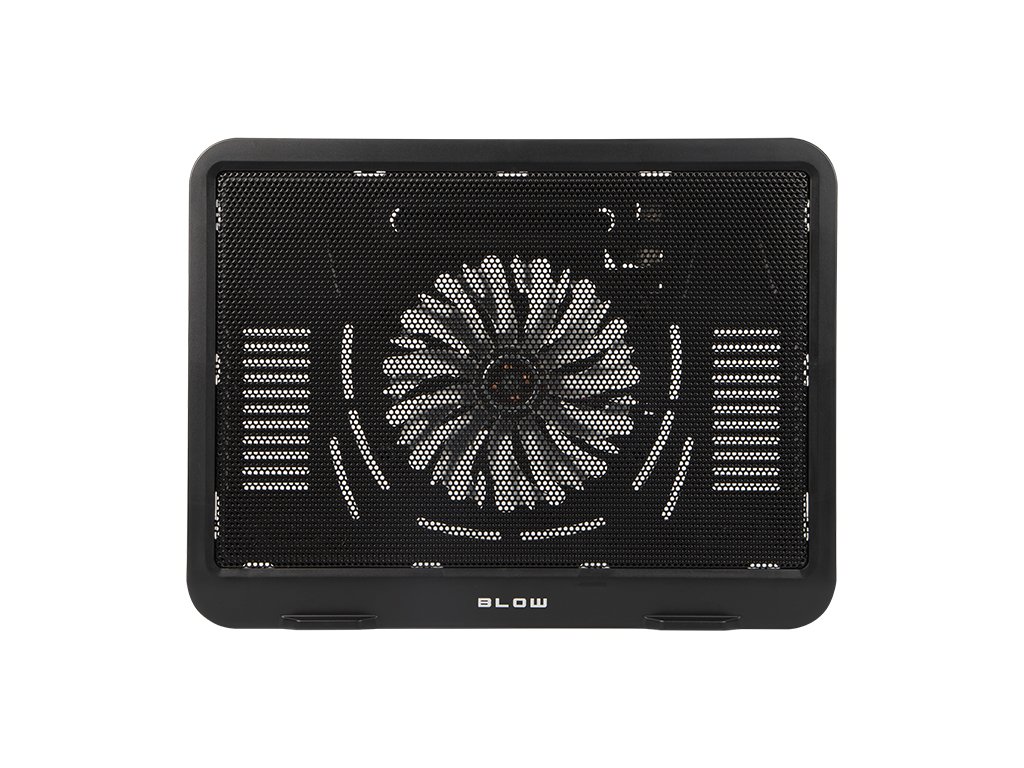 Cienka nowoczesna podstawka chłodząca pod notebooka. Posiadająca wbudowany niezwykle cichy, podświetlany na niebiesko, duży wentylator.