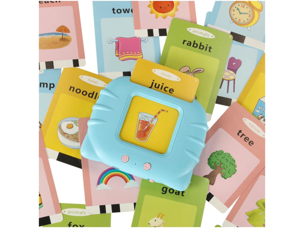 Svaka kartica ima dvije unaprijed snimljene riječi, po jednu na svakoj strani, i odgovarajući crtež za razumijevanje njihovog značenja. To stimulira i vizualno i slušno dijete