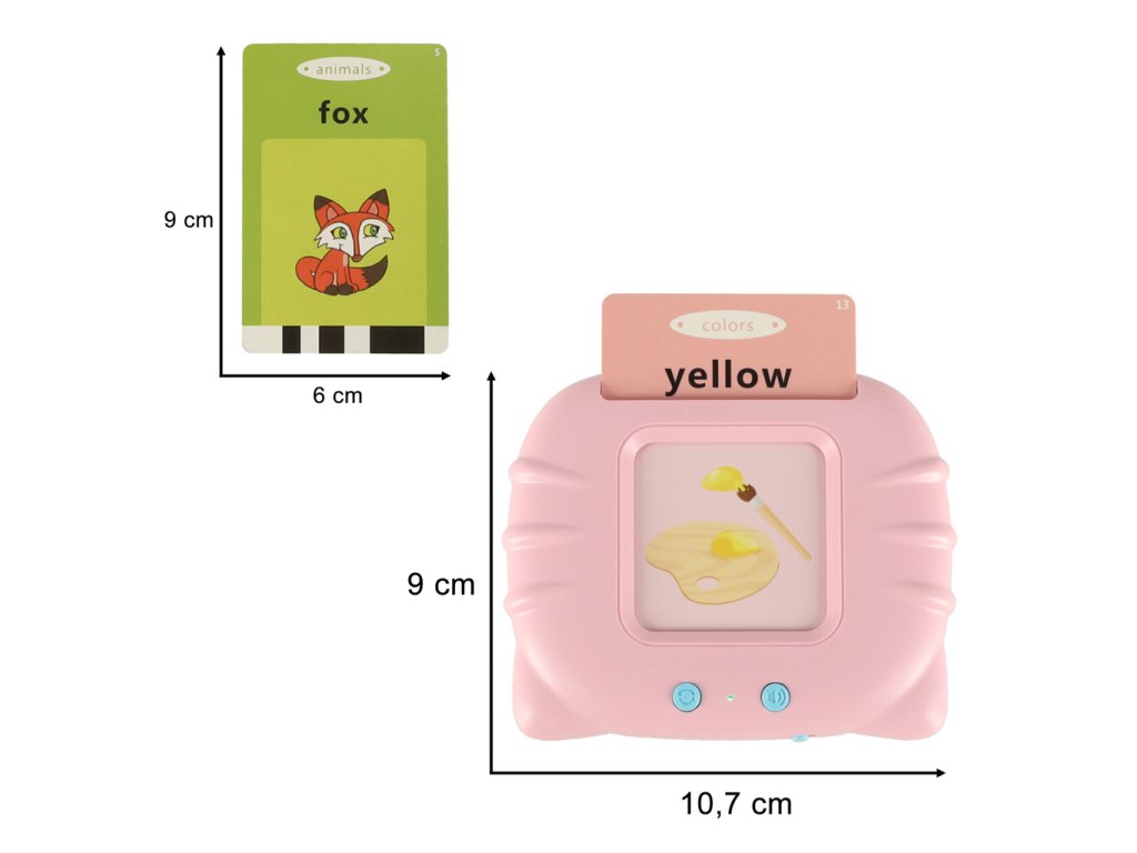 Kako ovaj proizvod točno funkcionira Dovoljno je uključiti ga, staviti jednu od 112 dostupnih kartica na odgovarajuće mjesto i uređaj će pročitati riječ, što vam omogućava da naučite pravilnu izgovor.