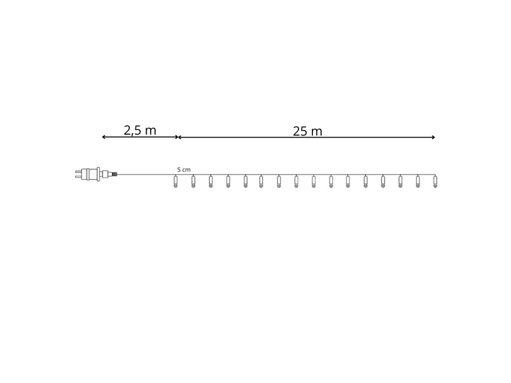 - Dužina pojedinačnog svjetla: 2,5 cm