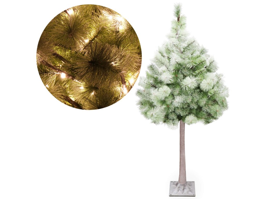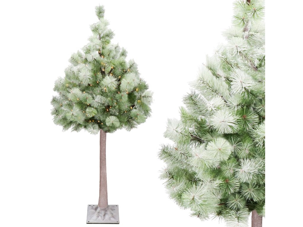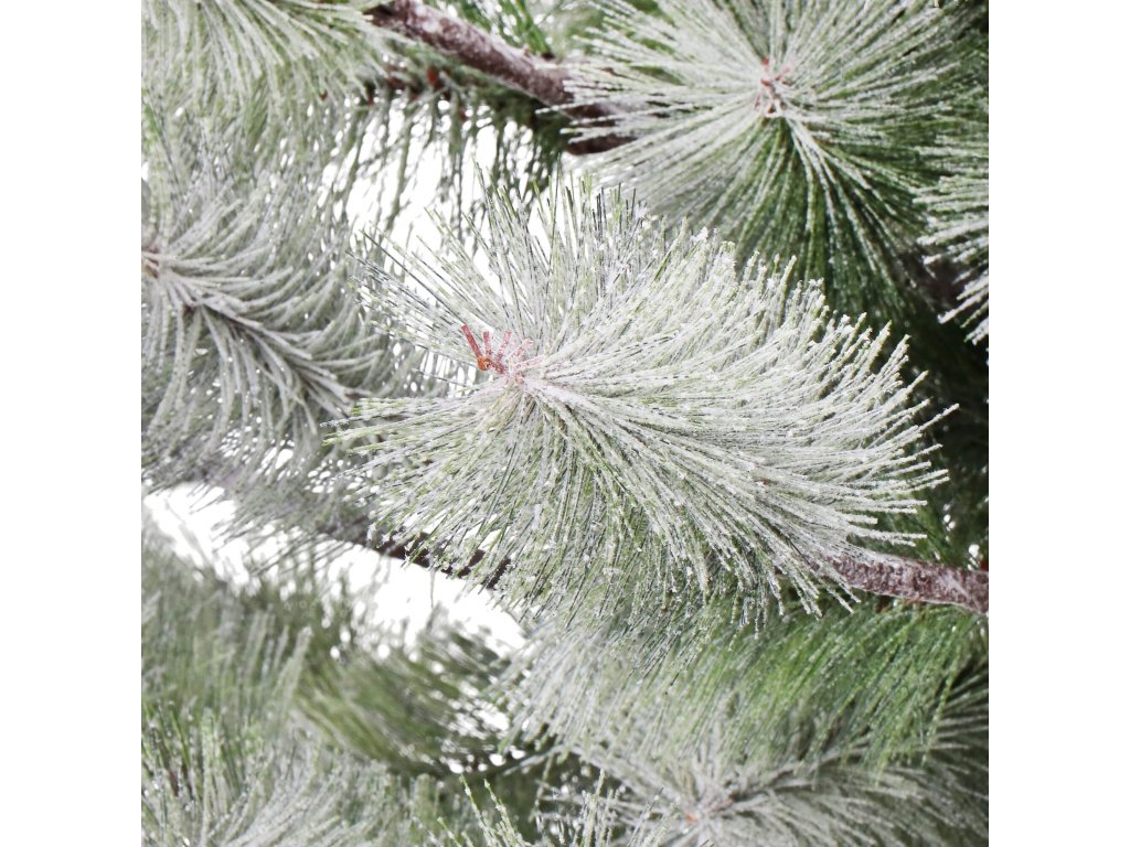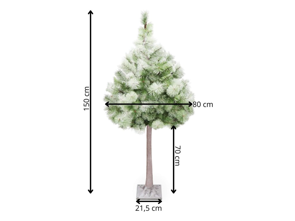 - Deblo i grane s igličastim vrhovima imitiraju prirodan izgled igličastog stabla, podsjećajući na bor; pokriveno umjetnim snijegom