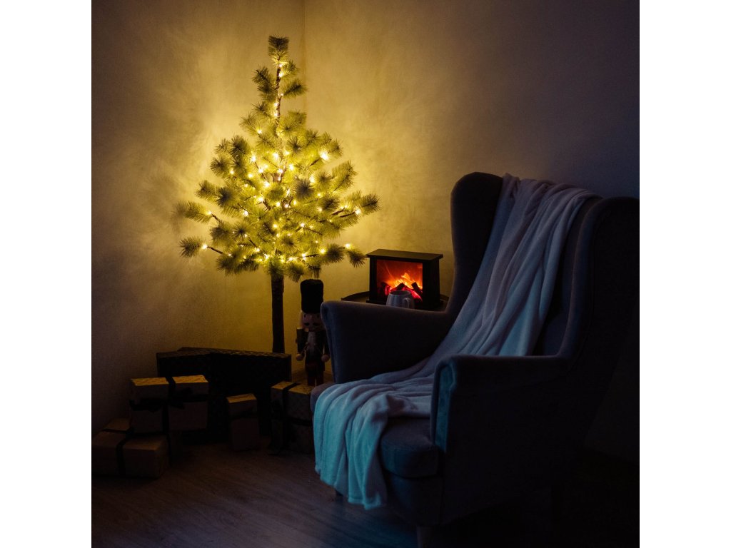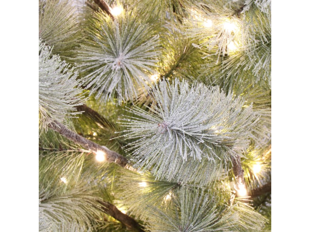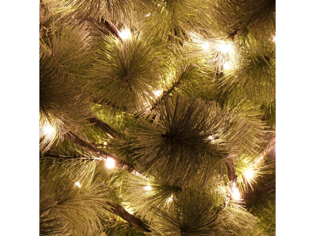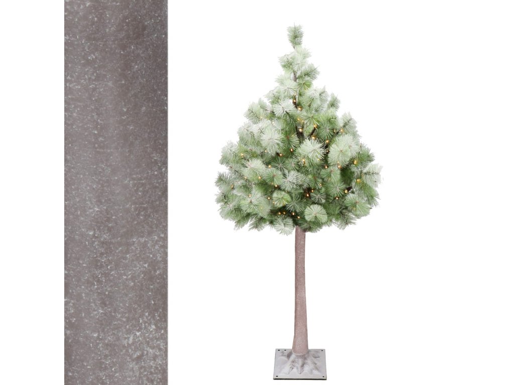 - Deblo i grane s igličastim vrhovima imitiraju prirodan izgled igličastog stabla, podsjećajući na bor; pokriveno umjetnim snijegom