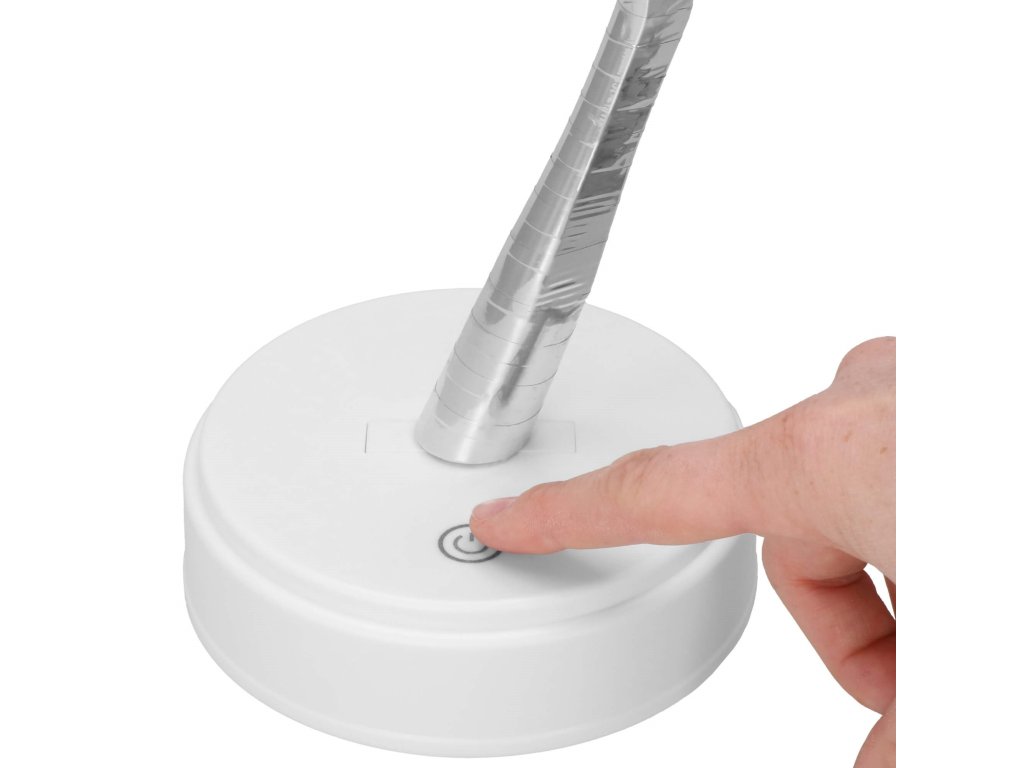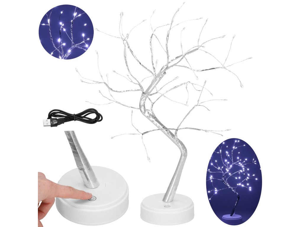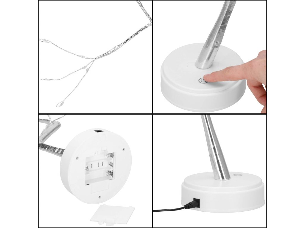 - Prekidač on/off smješten na bazi radi na dodir. Jednostavan dodir aktivira stalno osvjetljenje, sljedeći dodir mijenja način rada na izmjenično treptanje, sljedeći dodir gasi drvo.