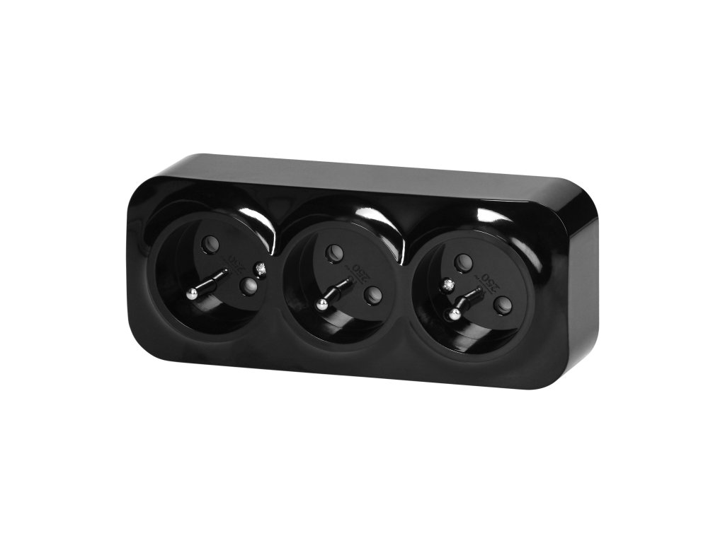 Crna 3-struka utičnica, 16A, 230V, 10 kom