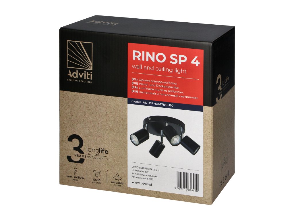 Crna stropna svjetiljka RINO 4x50W GU10 IP20 idealan je izbor za one koji traže snažnu i stilsku rasvjetu. Bez obzira koristite li je u dnevnoj sobi, kuhinji ili uredu, njen moderni dizajn i snažna rasvjeta sigurno vas neće razočarati. Osim toga, s jednostavnom instalacijom i dugim vijekom trajanja, predstavlja pravu investiciju u kvalitetu vašeg stanovanja.