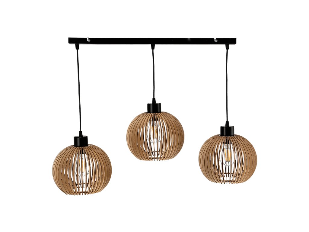 Crna viseća svjetiljka drvo 3x60W E27
