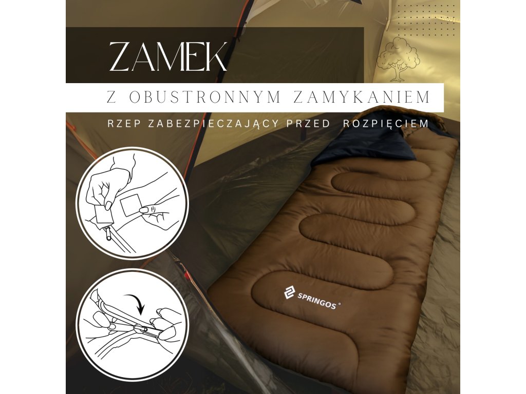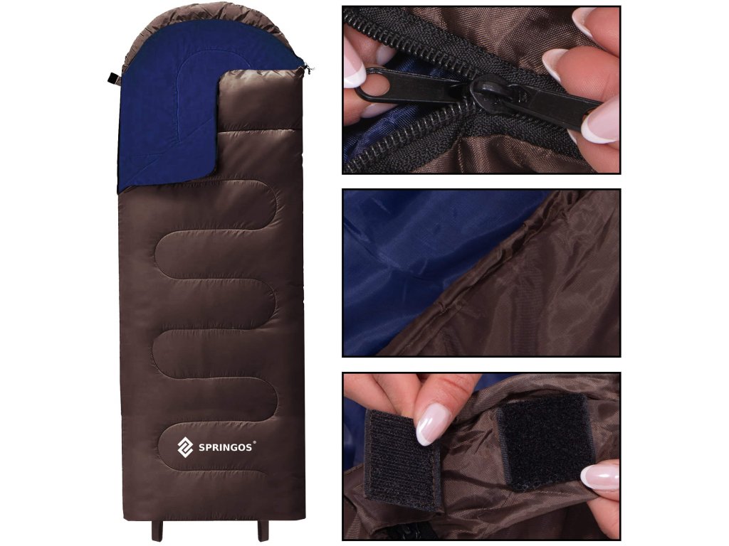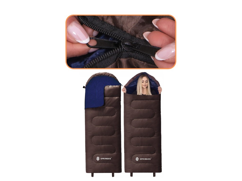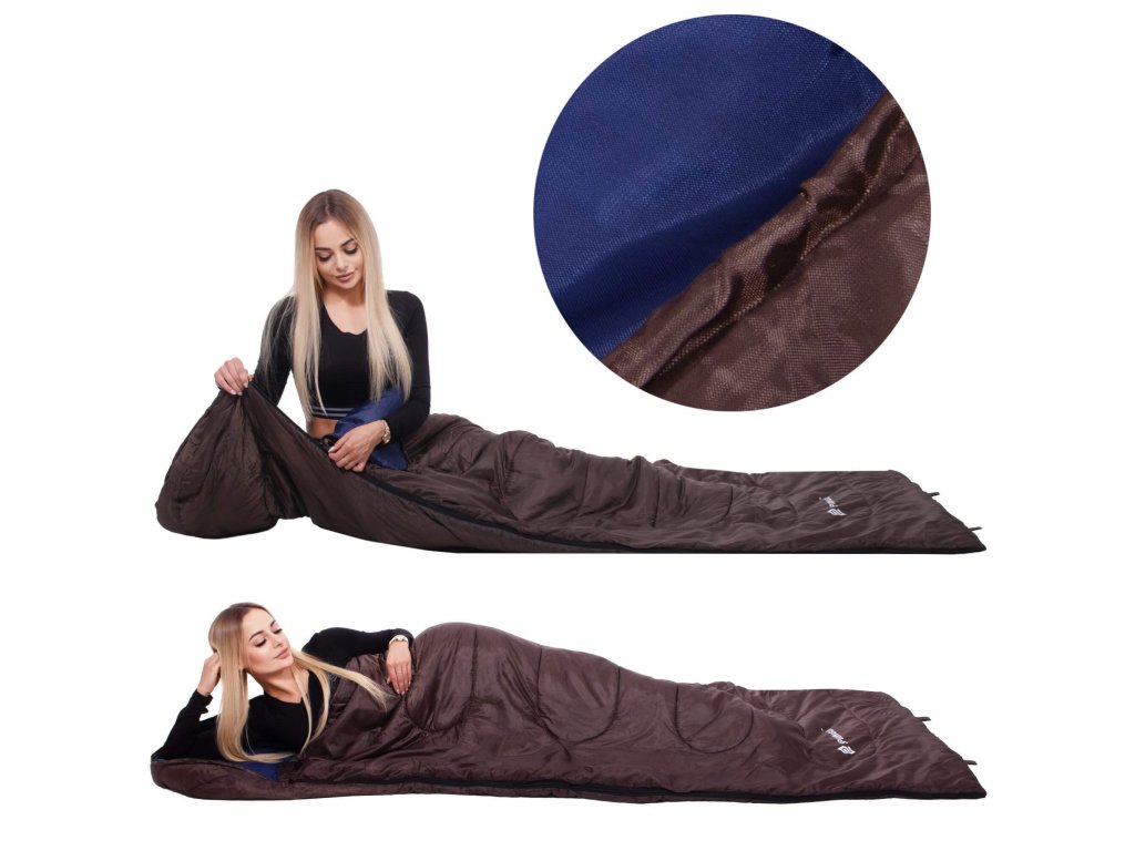 - Pravokutna vreća za spavanje s patentnim zatvaračem duž strane i donjeg ruba, što omogućava razmještanje vreće ravno i korištenje kao pokrivača