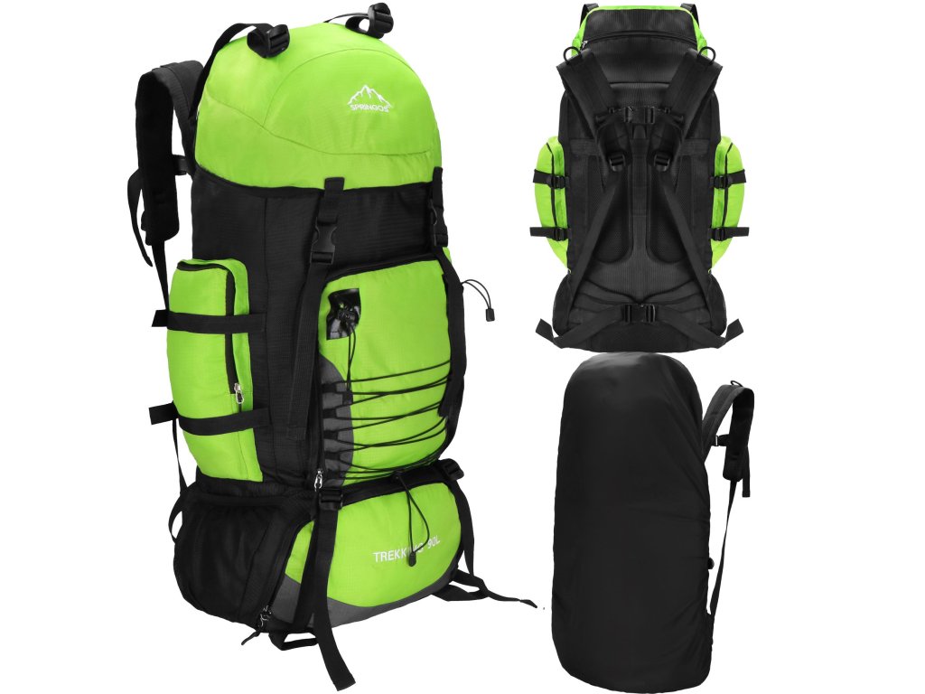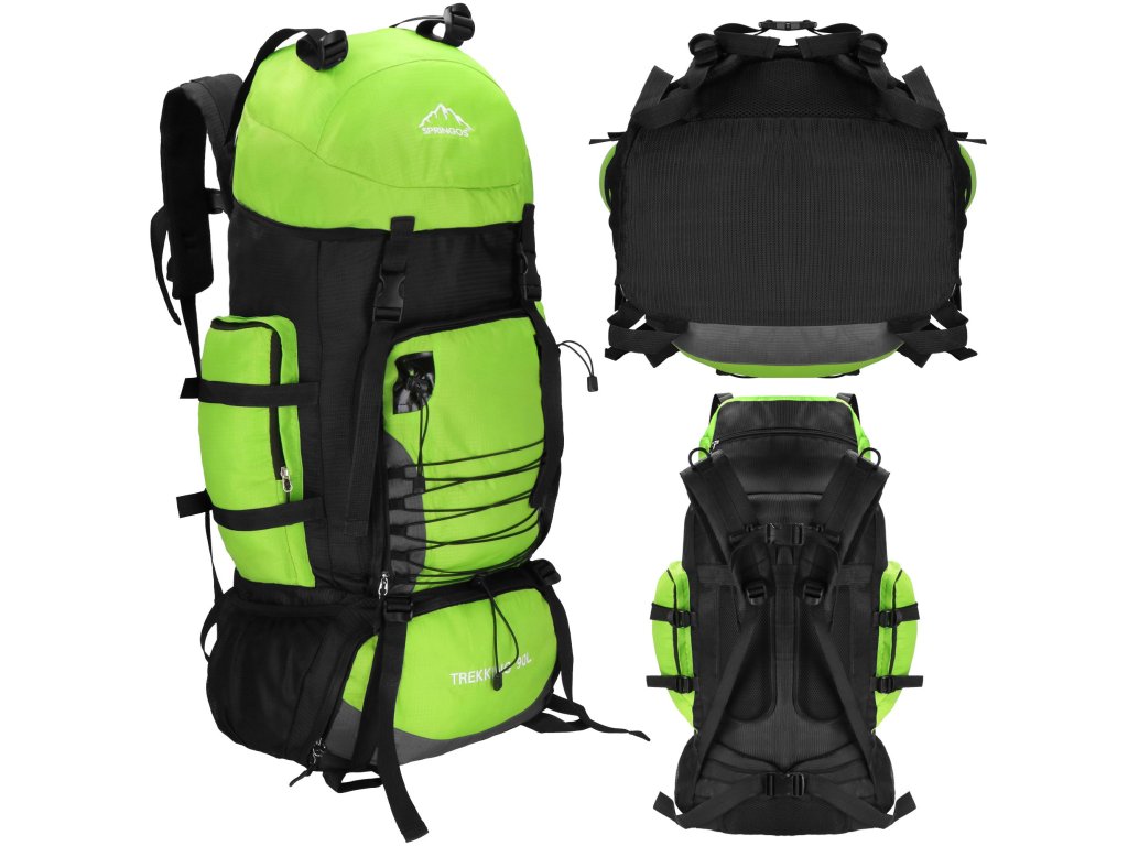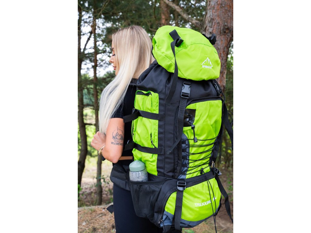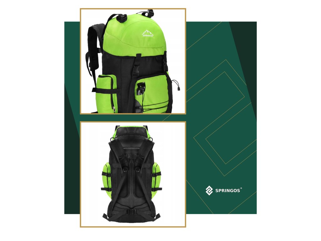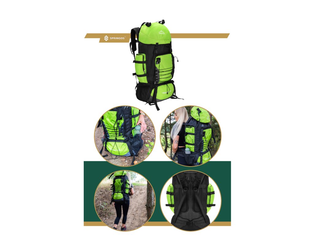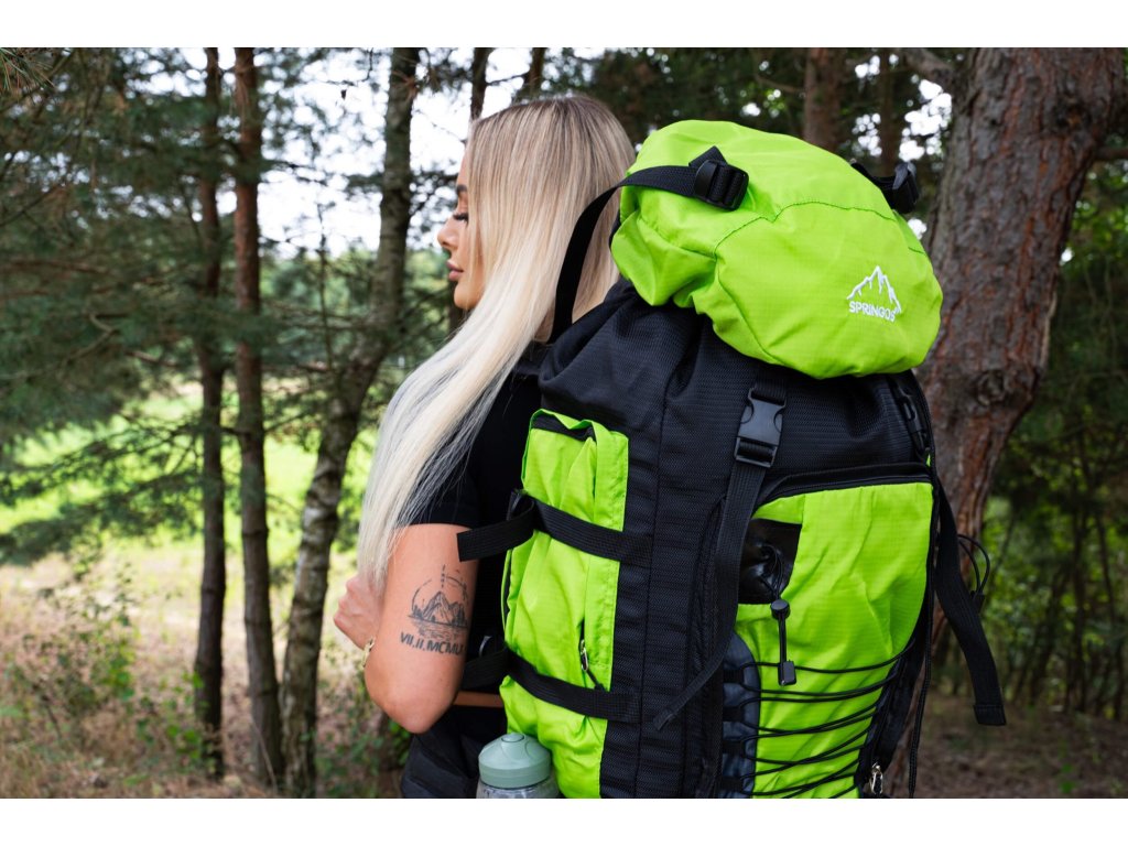 - Na gornjem dijelu sprijeda poklopca izvezeno bijeli logo Springos, na donjem dijelu naziv TREKKING 90L.