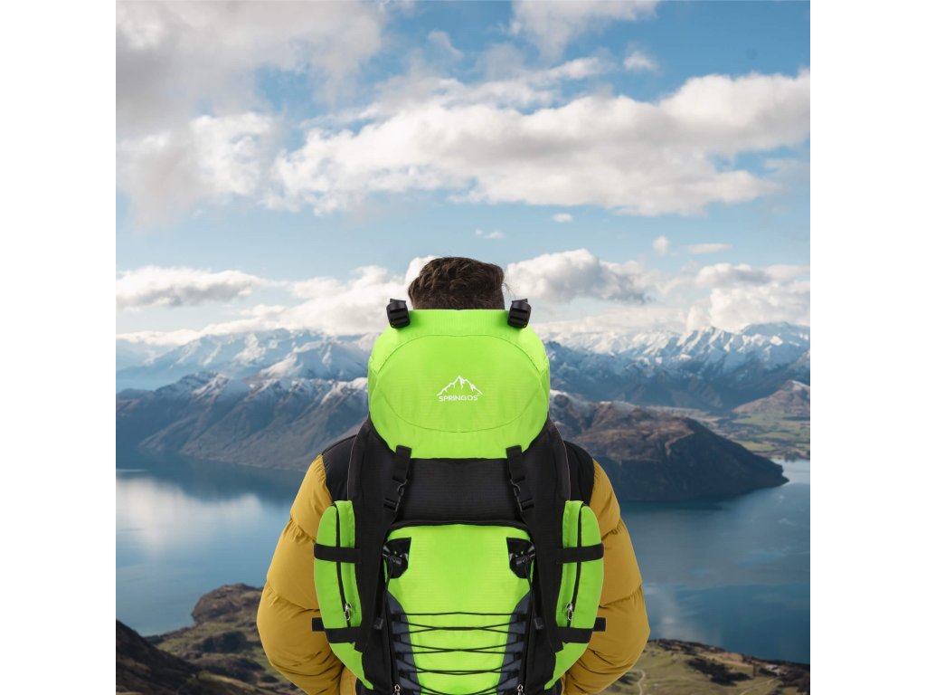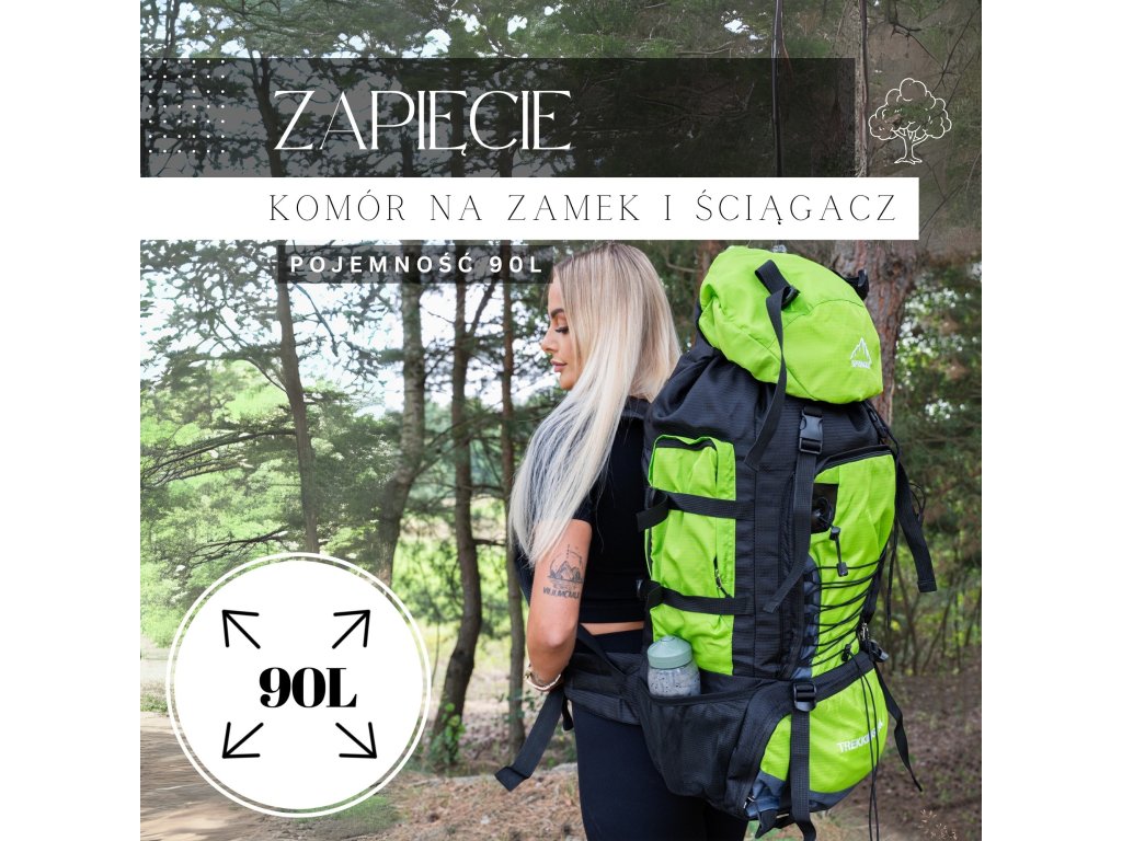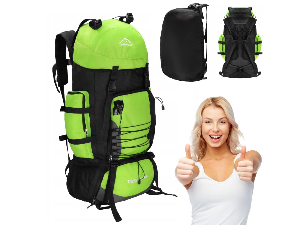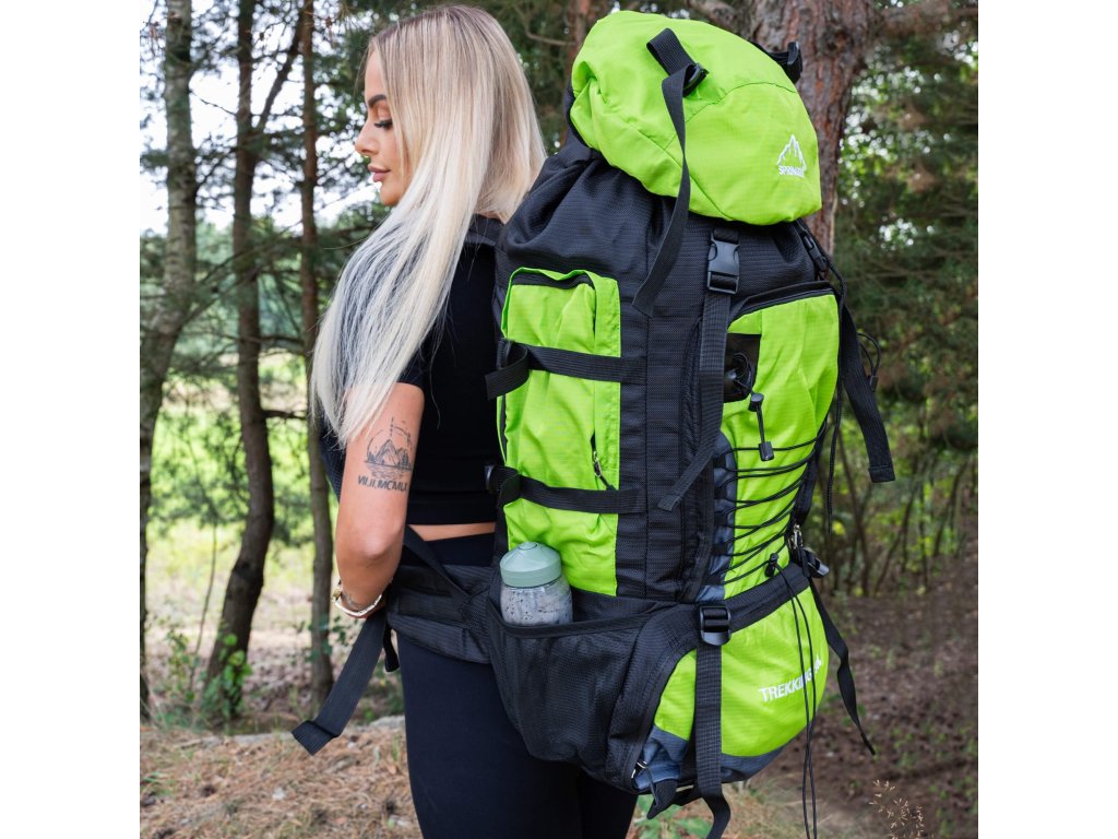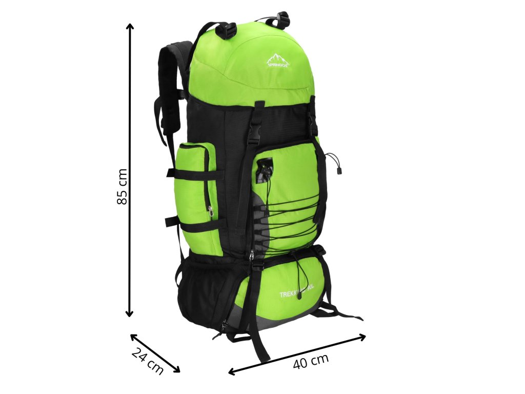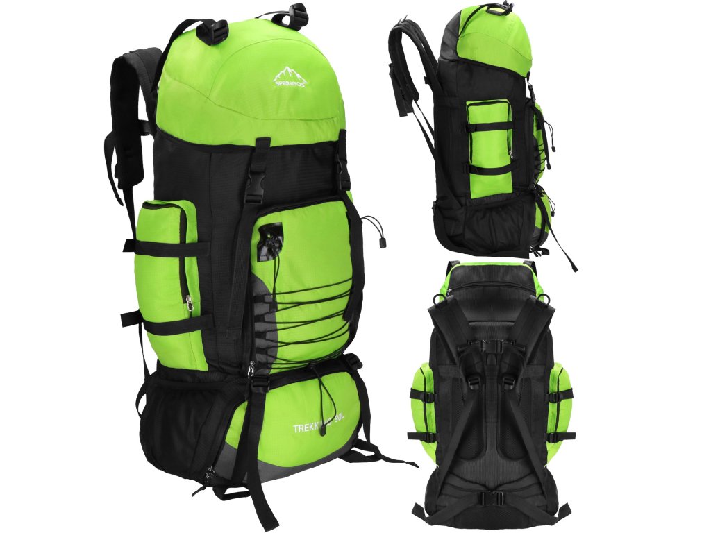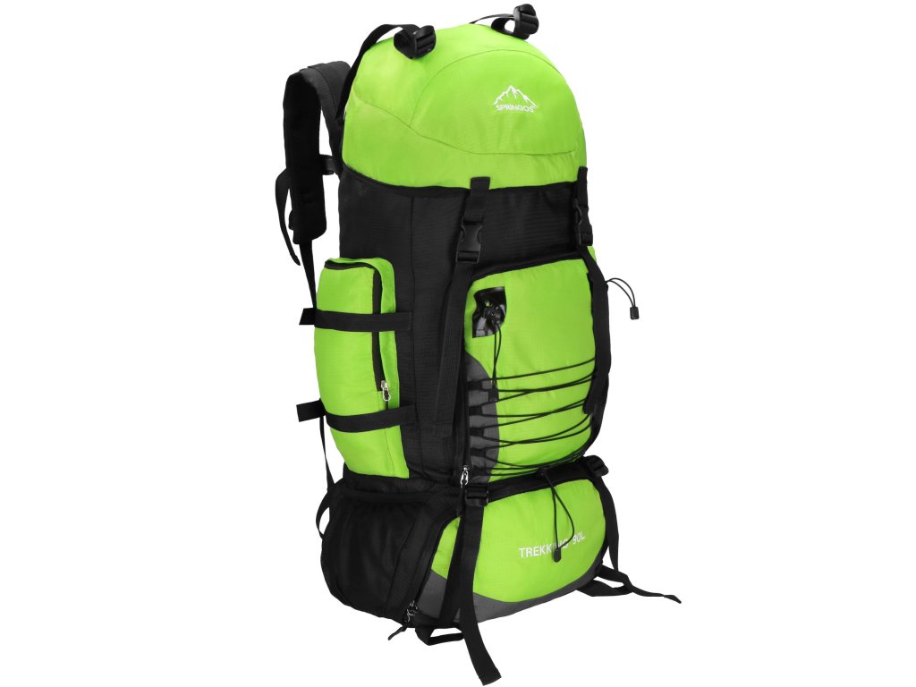 - Na gornjem dijelu sprijeda poklopca izvezeno bijeli logo Springos, na donjem dijelu naziv TREKKING 90L.