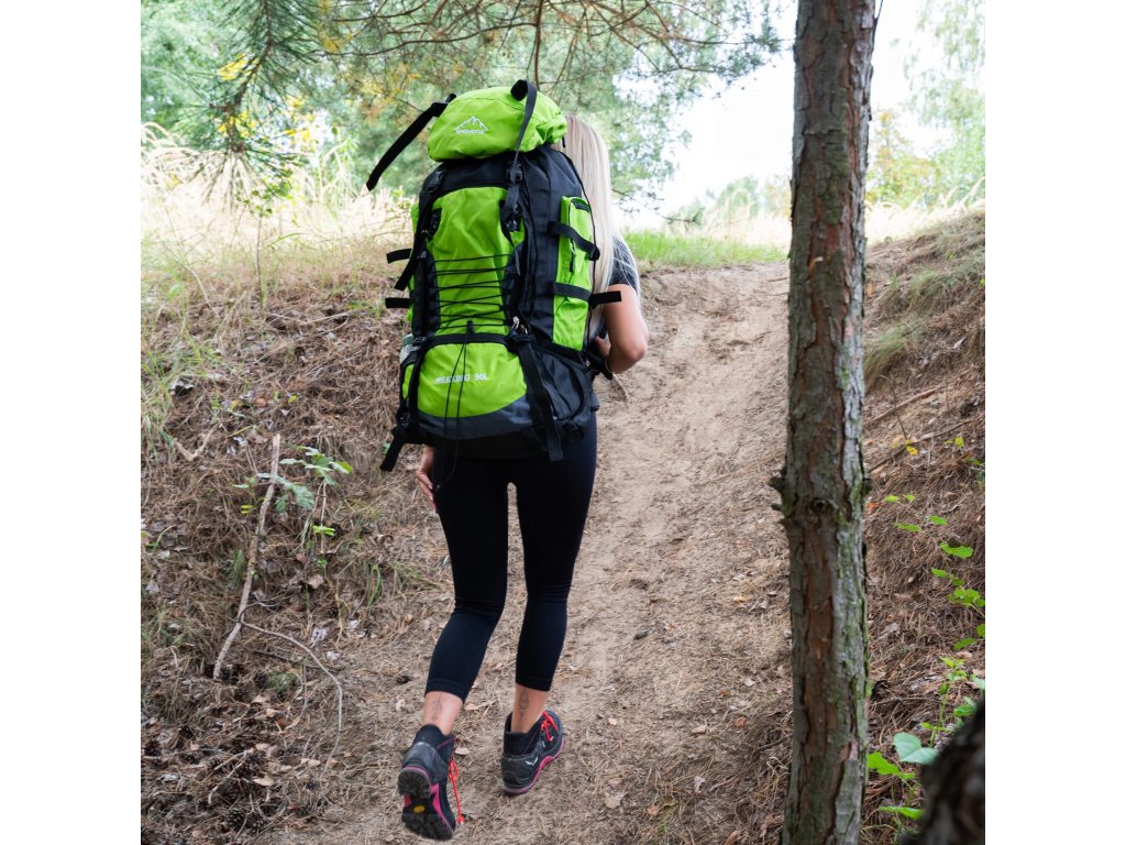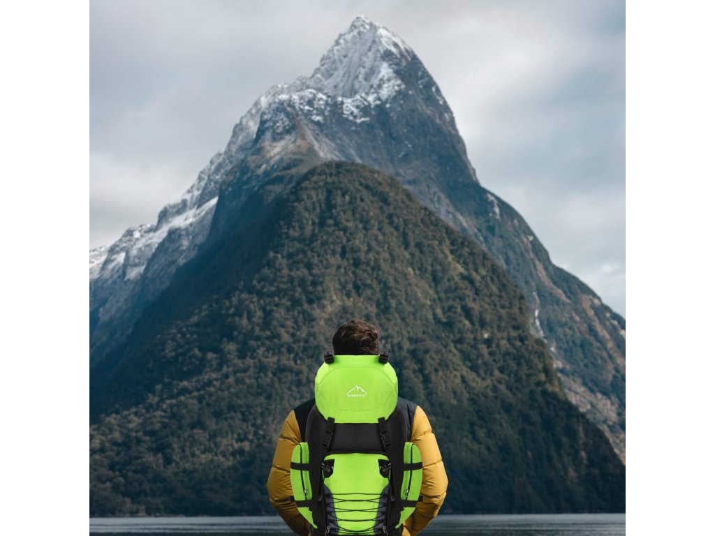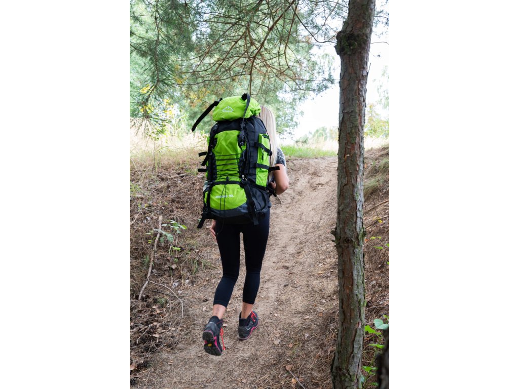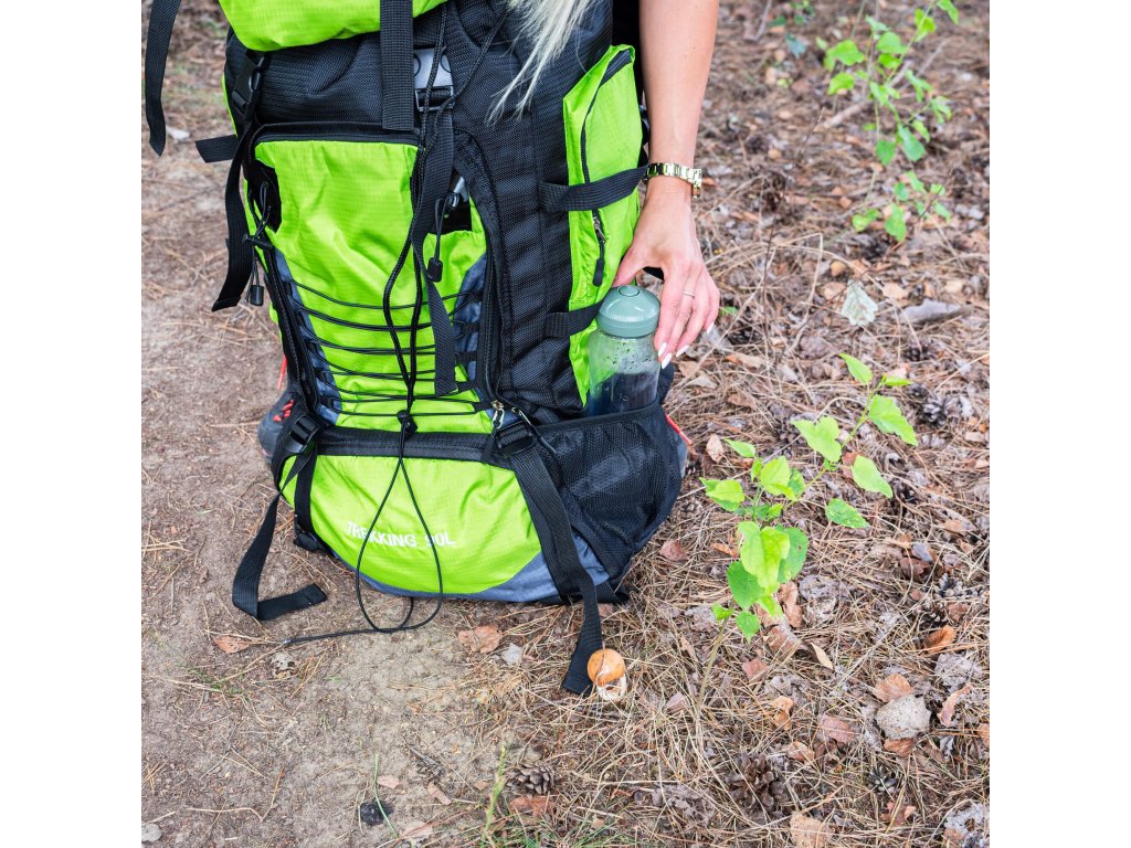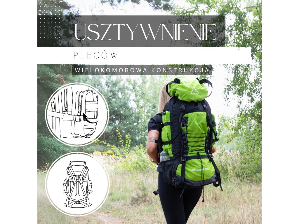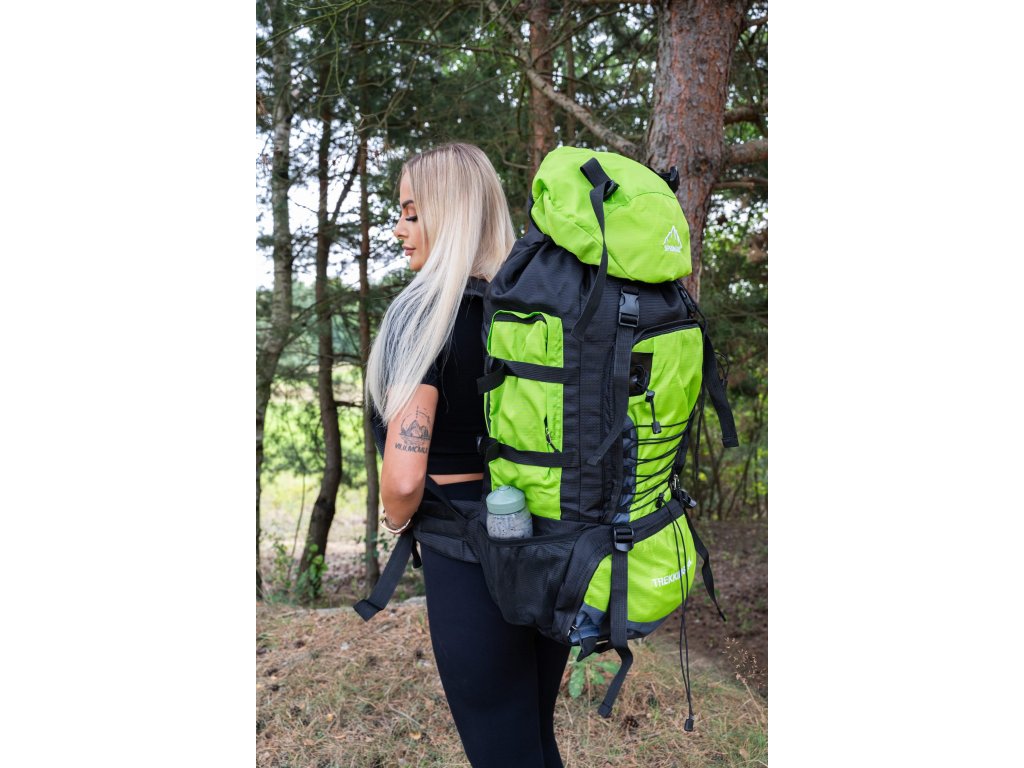 - Na gornjem dijelu sprijeda poklopca izvezeno bijeli logo Springos, na donjem dijelu naziv TREKKING 90L.