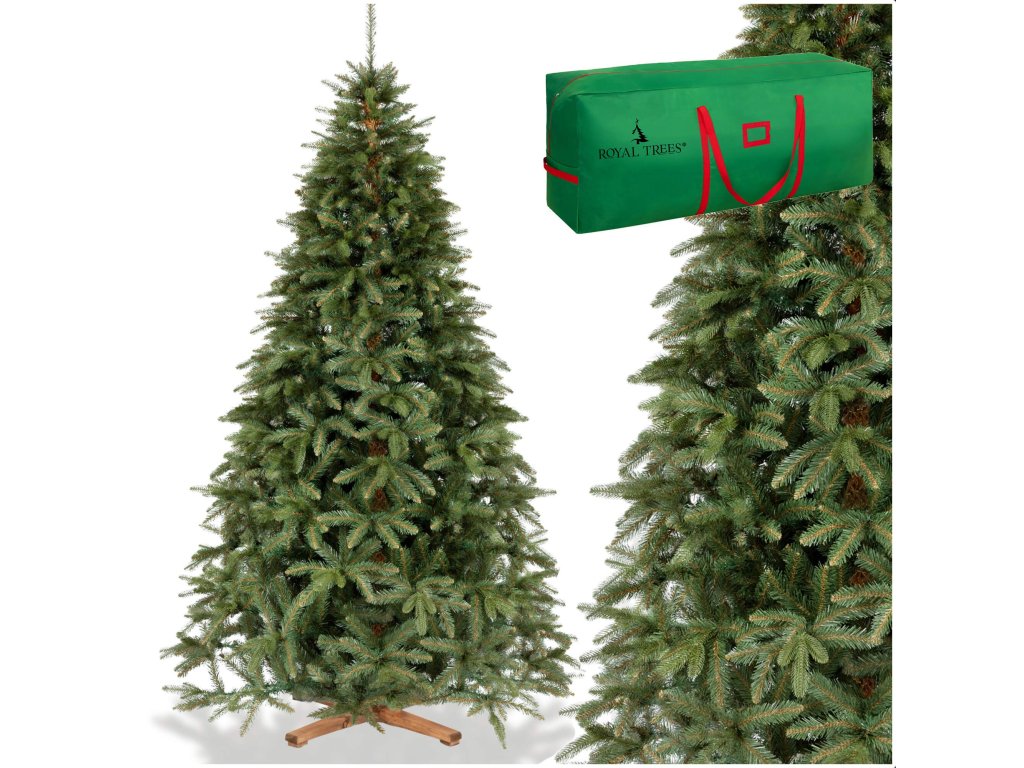 Osnovni podaci: Marka: Royal Trees® Vrsta drvca: Sibirska smreka + PE EKSKLUZIVNO Ukupna visina (mjereno od tla): 240 cm Materijal borovih iglica: ekološki PVC, PE boja iglica: zelena Vrsta postolja: s četiri kraka Smeđe omatanje oponašajuće deblo drvca Krošnja: Ukupna visina (mjereno od tla): 240 cm Maksimalni raspon (mjeren na najširem mjestu): približno 142 cm Raspon mjeren na visini 1 m: približno 92 cm Dužina vrha: 27 cm Broj razina: 21 + vrh Broj grana: 116 Broj vrhova: 1418 Širina vrhova (pojedinačne grančice): približno 3-6 cm Udaljenost od tla do krošnje: 24 cm Završetak grana: špic Broj dijelova od kojih se sastoji krošnja: 3 Postolje: Vrsta: s četiri kraka Materijal: drvo Boja: smeđa Visina (sredina postolja): 7,5 cm (+ 3 cm plastični umetak) Visina noge: 3,5 - 5 cm Dužina 1 noge: 30 cm Širina 1 noge: 5 cm Udaljenost između nogu (mjereno na krajevima): 43 cm Raspon postolja: 65 cm Pakiranje: Materijal: 100% Poliester Boja: zelena, crvena Prišiven prozorčić za karticu Jednosmjerni zatvarač Na pakiranju se nalazi logo Royal Trees® Dimenzije pakiranja: Visina: 40 cm Dužina: 125 cm Širina: 50 cm Prozori: 10 x 7 cm Gornja ručka: Širina: 2,5 cm Dužina petlje (od površine pakiranja do vrha petlje): približno 42 cm Ukupna dužina ručke: približno 84 cm Bočna ručka: Širina: 2,5 cm Ukupna dužina ručke: 20 cm Dodatne informacije: Dimenzije pakiranja: 120 x 40 x 40 cm Proizvod za samostalnu montažu Dvobojna folija: zelena i smeđa oponašajući pravu grančicu Ultra realističan izgled Važno: za postizanje zadovoljavajućeg učinka potrebno je grančice rasporediti i oblikovati s odgovarajućom pažnjom. Tolerancija dimenzija je +- 2%. Konstrukcija drvca je teška/precizno izrađena, Grane su debele i mesnate Video upute u obliku QR koda na pakiranjuAdditional parameters