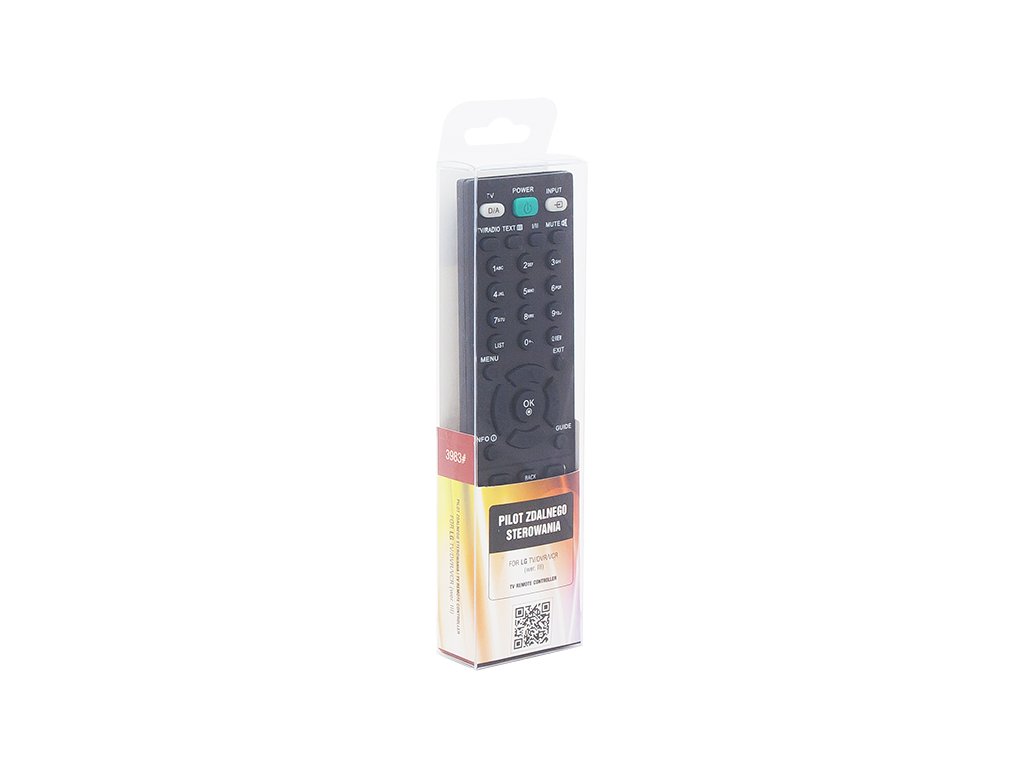 Namjena: uređaji marke LG: TV, videorekorder, DVROperativni domet: 8 mNapajanje: DC 3V / 2 x AAA baterija (baterije nisu uključene u paket) Univerzalni daljinski upravljač LG: TV, VIDEOKAMERA, DVR. Proizvod ima potrebne tipke za osnovno upravljanje navedenim uređajima. Jednostavan dizajn i raspored omogućuju potpuno lako i intuitivno korištenje. Pri izradi daljinskog upravljača korišteni su visokokvalitetni materijali kako bi se osigurala dugotrajnost proizvoda.Najvažnije funkcije: