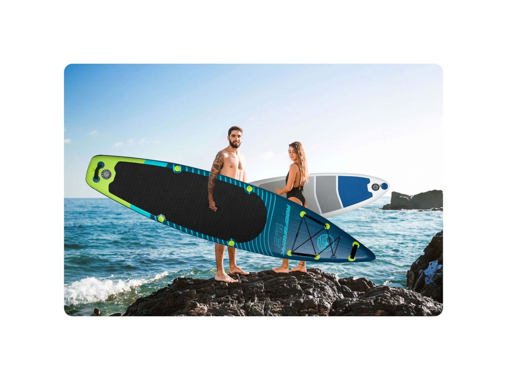 Vaša SUP daska bit će čvrsta, a ujedno lako prenosiva. Idealna za ljubitelje vodenih sportova, tražeći pouzdanu i udobnu opremu za svaku avanturu na vodi.