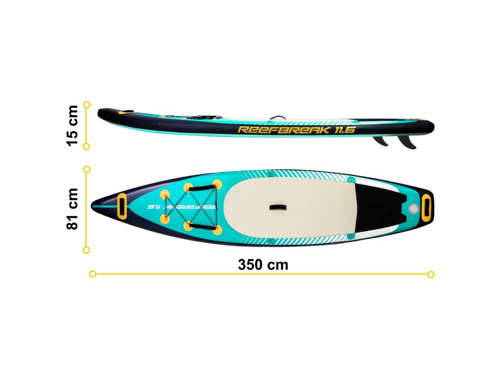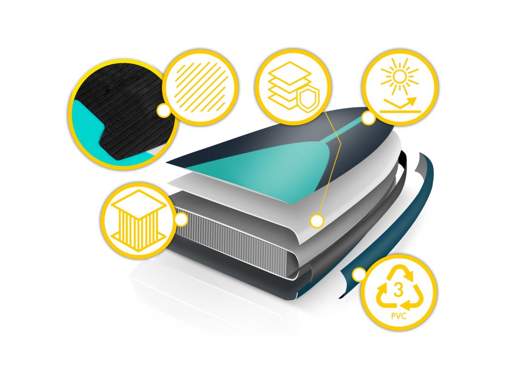 Premium SUP daska s troslojnom PVC konstrukcijom, ugrađenom karbonskom šinom i pojačanim šavovima.