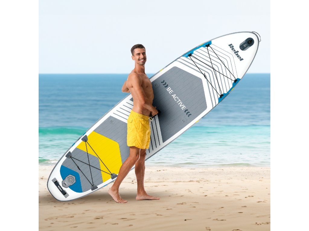 Paddleboard Rebel Active ističe se čvrstom i stabilnom konstrukcijom s drop-stitch tehnologijom. To vam omogućuje da se sigurno krećete po vodi bez obzira na vašu razinu vještina, bilo da ste u stojećem ili sjedećem položaju. Protuklizna daska prekrivena EVA pjenom debljine 3 mm pruža izvrsno prianjanje, čime i najintenzivnije paddleboarding sesije postaju zabava.