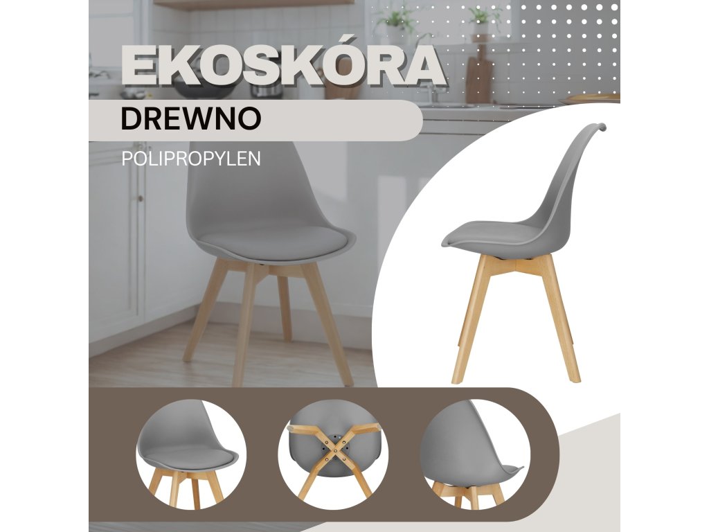 - Materijal: PP / drvo / ekokoža