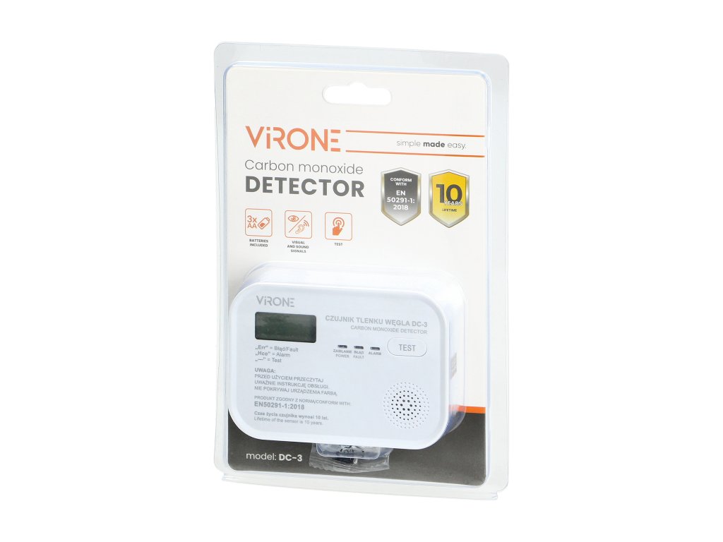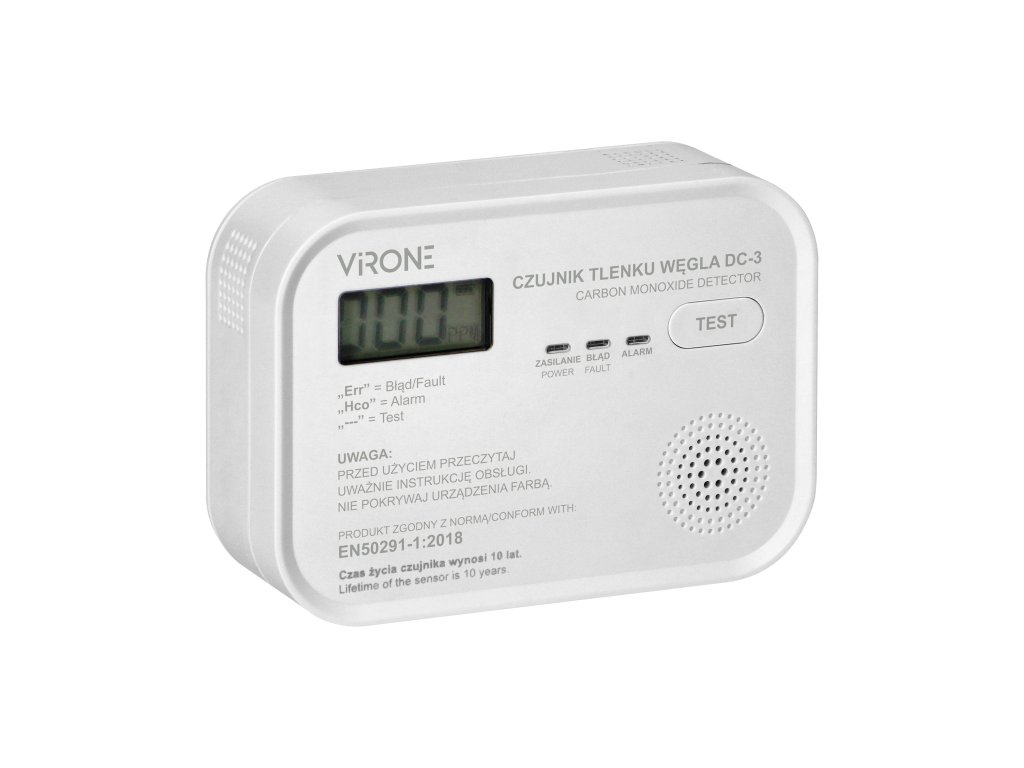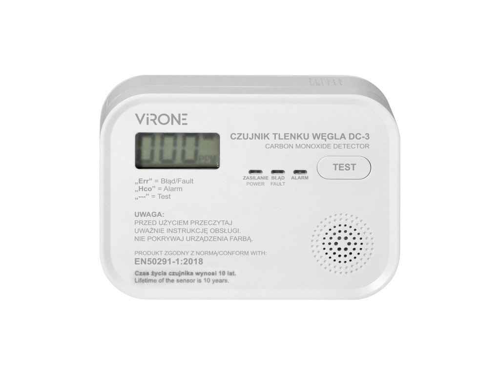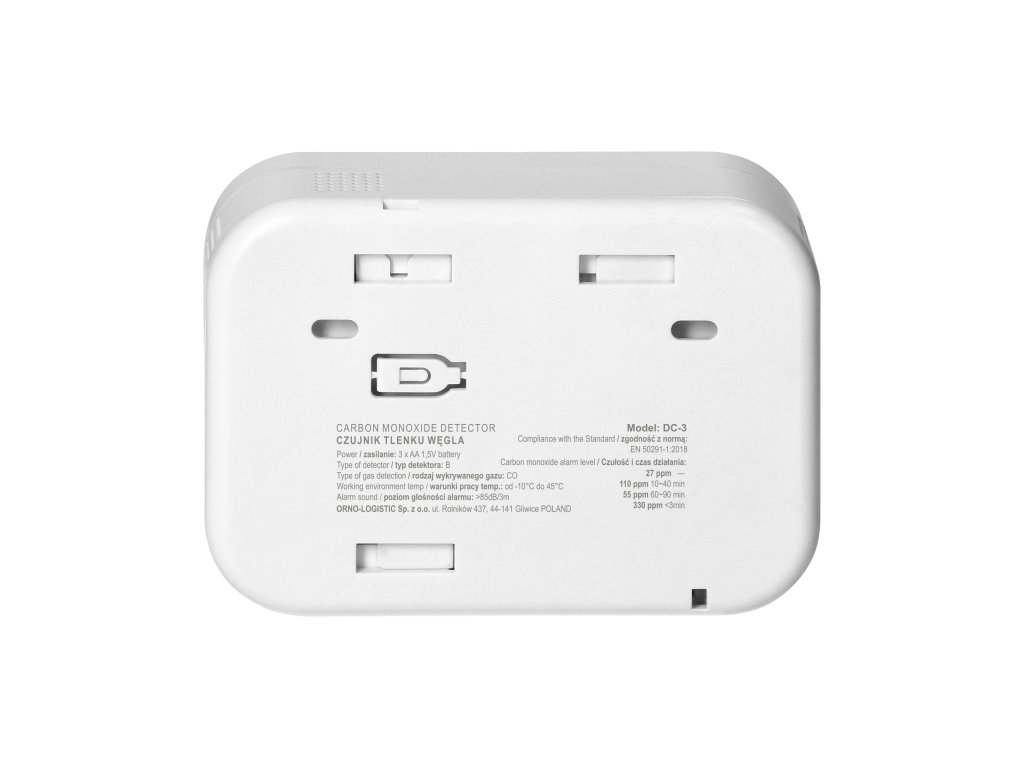 Uređaj je namijenjen za kontinuirano praćenje koncentracije CO (ugljičnog monoksida) u zraku, kao i za detekciju i alarmiranje pri prekoračenju maksimalne sigurne koncentracije ovog plina. Senzor ne detektira druge otrovne ili zapaljive plinove. ## Dostupna je i tipka TEST za provjeru ispravnosti rada uređaja. ## Detektor ugljičnog monoksida usklađen je sa standardom EN 50291-1:2018 za kućne detektore ugljičnog monoksida.Dodatni parametri