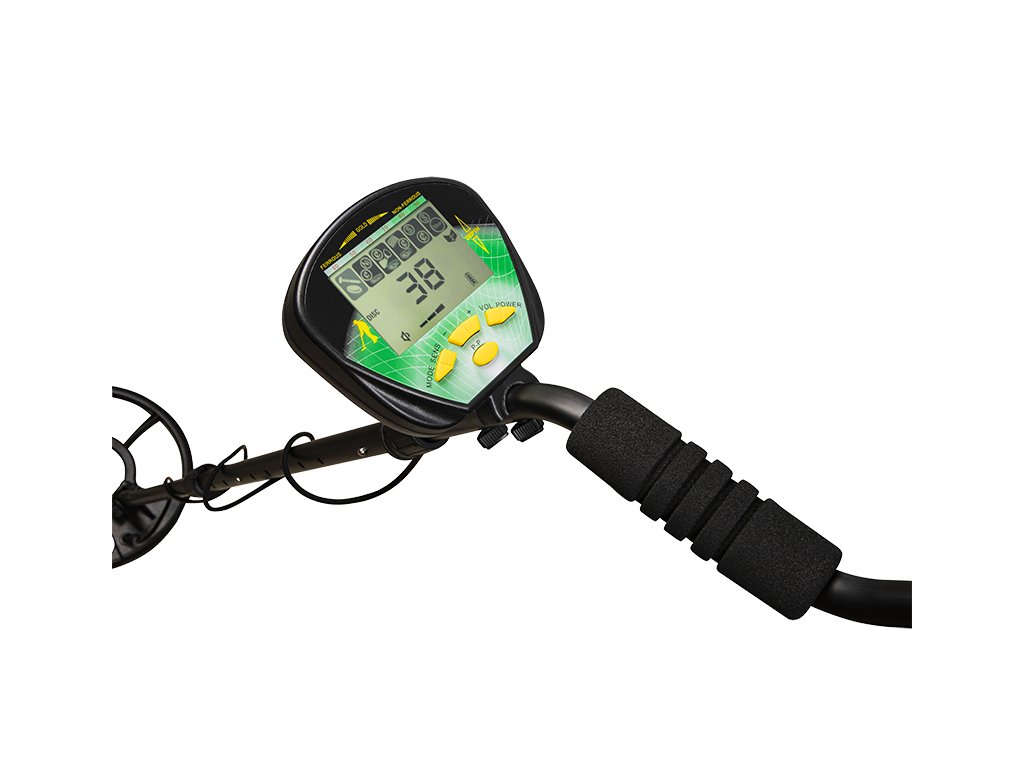 Specifikacija: Operativni režimi: četiri plus jedan Indikator dubine novčića: 2", 4", 6", 8" i + Kontrola osjetljivosti: 5 stupnjeva Razlikovanje ciljanih metala: 6 tipova" 0 do 99 dvoznamenkastih brojeva Indikator jačine signala: 5 stupnjeva Frekvencija zvuka: tri tipa frekvencija označavaju različite metale Indikator glasnoće: 3 koraka Pozadinsko osvjetljenje LCD-a: bijelo Indikator baterije: 4 koraka Automatsko isključivanje: ako nema aktivnosti 15 minuta Pretraživačka zavojnica: otvorena vodootporna pretraživačka zavojnica od 250 mm Priključak za slušalice: 1/8 inča Napajanje: 9V 6LR61 Najvažnije značajke: Moderna tehnologija - najnoviji patentirani dizajn i potpuno digitalni lokalizacijski krug Izvrsna osjetljivost detekcije - indicira gotovo sve objekte u dometu Režimi kretanja - ALL METAL, DISC, MEMORY, JEWELRY Režim bez kretanja - praćenje Jasan LCD zaslon - s bijelim pozadinskim osvjetljenjem Višestruki indikatori - omogućava čitanje i drugih podataka LCD zaslon - bijelo pozadinsko osvjetljenje Mnogo indikatora - omogućava čitanje npr. dubine novčića, jačine signala, glasnoće, razine napunjenosti baterije i drugo Širok raspon podešavanja nosača ruke - omogućuje prilagodbu duljine prema visini korisnika Intuitivna kontrolna ploča - jednostavno upravljanje i izbor operativnih režima Pretraživanje mnogih vrsta metala - željezo, nikal, aluminij, cink, bakar, srebro Podesiva glasnoća i osjetljivost Napredna tehnologija Detektor metala XTREME PRO je proizvod s izvrsnom osjetljivošću i sposobnostima razlikovanja - može identificirati i prikazati šest vrsta metala. Zahvaljujući najnovijem patentiranom dizajnu i potpuno digitalnom lokalizacijskom krugu, poboljšana je preciznost i stabilnost lokalizacije, što također utječe na dobru sposobnost protiv oštećenja.Intuitivna kontrolna pločaNa LCD zaslonu možemo pročitati trenutnu jačinu signala, režim, osjetljivost, glasnoću, dubinu i također provjeriti razinu napunjenosti baterije. Ugrađenih pet tipki osigurava jednostavno i intuitivno upravljanje uređajem.