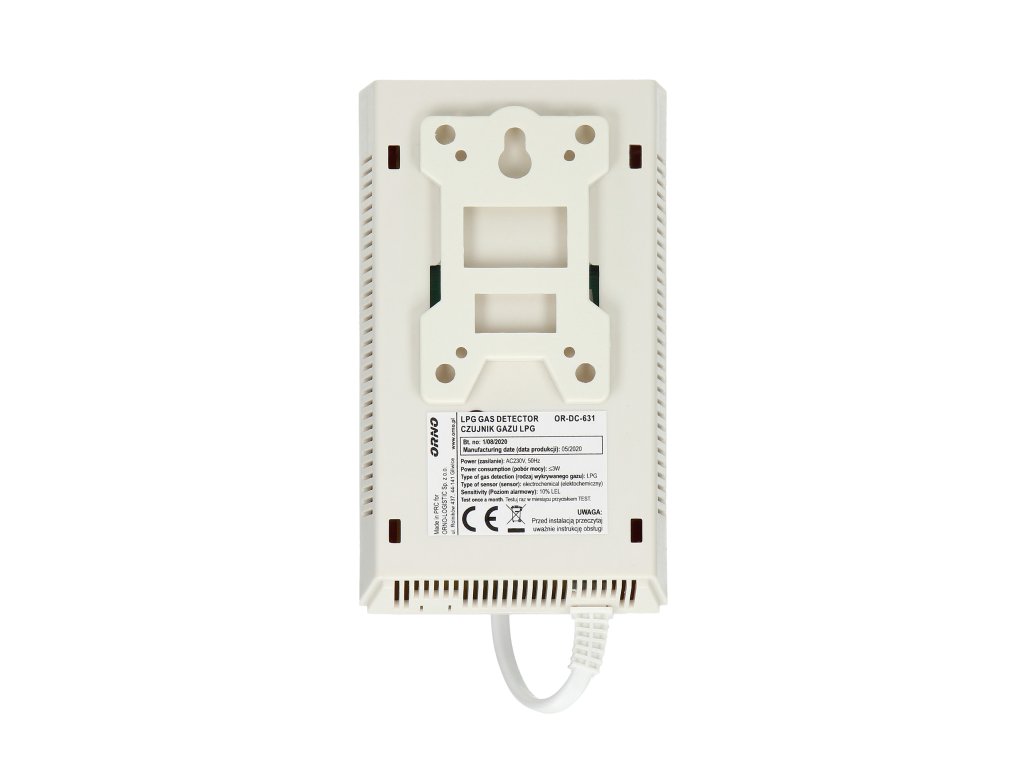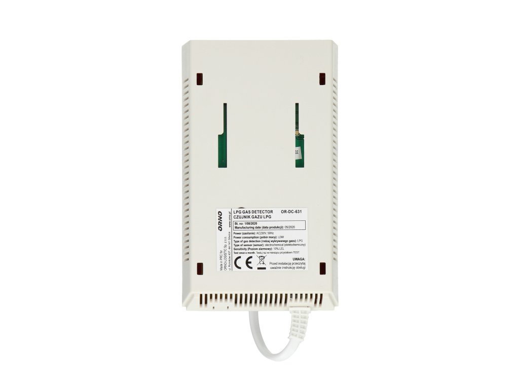 Senzor OR-DC-631 je moderan detektor plina LPG za unutarnju upotrebu. Služi za neprekidno praćenje prisutnosti i detekciju plina LPG koji curi iz nepropusnosti. Uređaj koristi visokokvalitetni elektrochemijski senzor za postizanje visoke razine detekcije. Kad se detektira curenje plina koje doseže postavljeni prag alarma, detektor će dati signal i upalit će se crvena LED lampica.