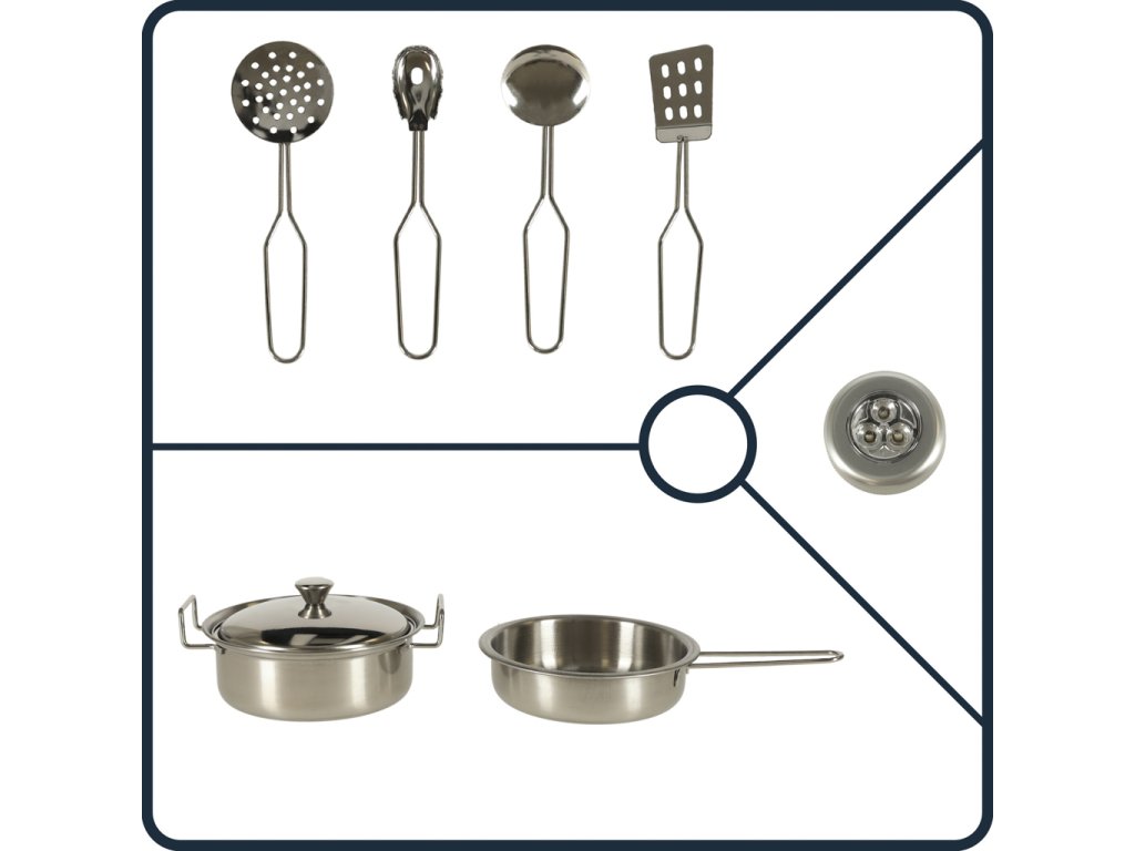 Okrem množstva spotrebičov súprava obsahuje aj príslušenstvo, ktoré je pri varení rovnako dôležité - hrniec, panvicu a ďalšie náčinie.