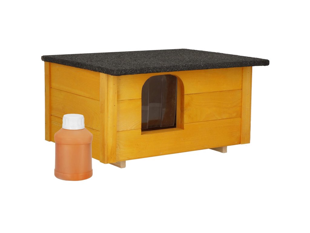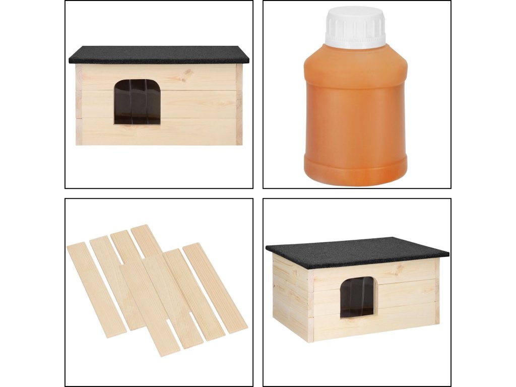 - Kućica stoji na 2 drvene noge, zahvaljujući čemu održava odgovarajuću temperaturu dulje.