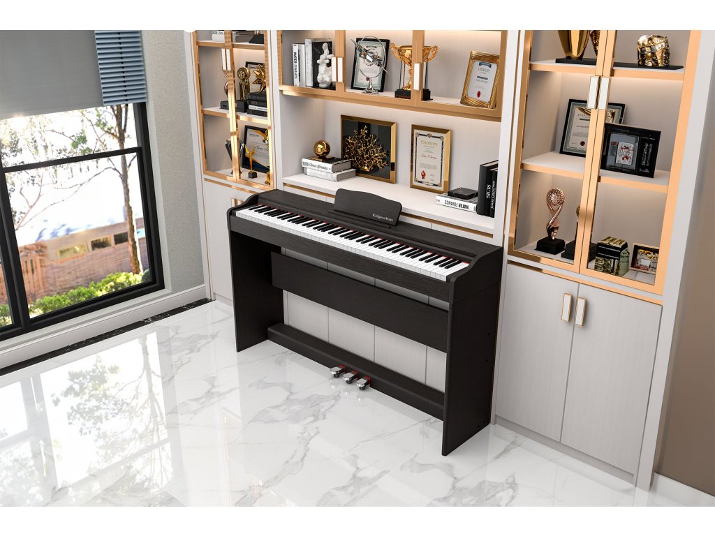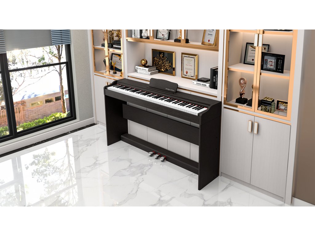 Električni klavir KMDP-105 opremljen je čekićastom tipkovnicom koja vam pruža osjećaj kao da svirate na tradicionalnom akustičnom klaviru. 88 potpuno izbalansiranih tipki pruža vam cijeli tonski raspon. Važno je da savršeno reproducirane reakcije tipki omogućuju vam uživanje u svakom zvuku bez obzira na razinu vašeg napretka.