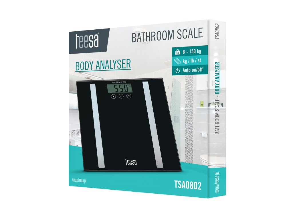 Analizator tijela idealan je za sve koji vole imati potpunu kontrolu nad svojim tijelom. Glavna prednost kupaonske vage je analiza sastava vašeg tijela, zahvaljujući kojoj možete brzo saznati sadržaj vode, masti, mišića i kostiju. Osim toga, vaga vam izračunava BMI i minimalnu dnevnu potrebu kalorija. Mjerenja se prikazuju na velikom, lako čitljivom LCD zaslonu u jedinici po vašem izboru - kilogramima, funtama ili kamenju - a zahvaljujući točnosti od 0,1 kg primijetit ćete i male promjene vaše težine. Uređaj pohranjuje podatke za 10 korisnika, pa ga mogu koristiti svi članovi obitelji.