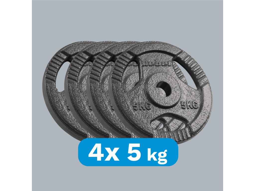 Set utega od lijevanog željeza Rebel Active sastoji se od 4 ploče težine 5 kg, stoga lako možete prilagoditi trening vašim sposobnostima. Ovo je idealno rješenje za jačanje mišića ili intervalni trening za početnike i naprednije.