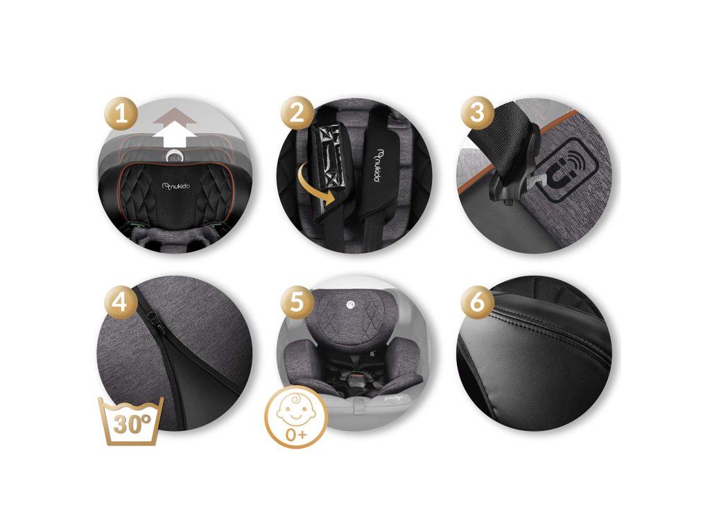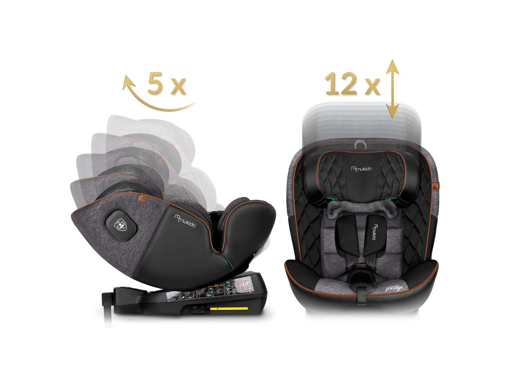 Dječja autosjedalica Nukido Prestige Line crno-siva 0-36 kg ISOFIX