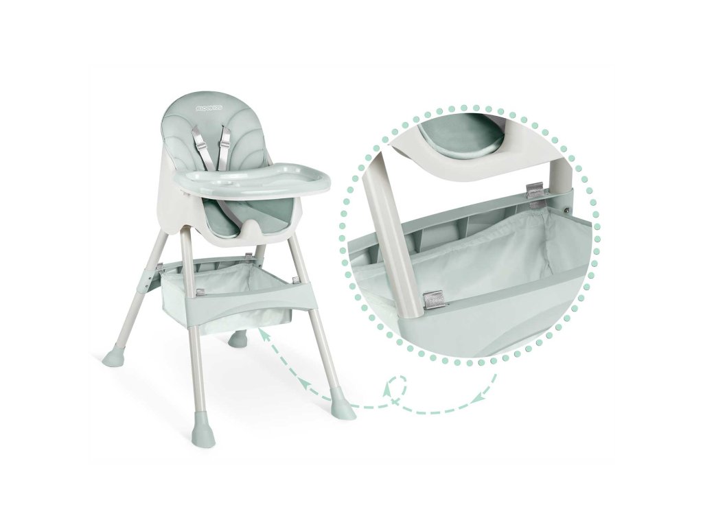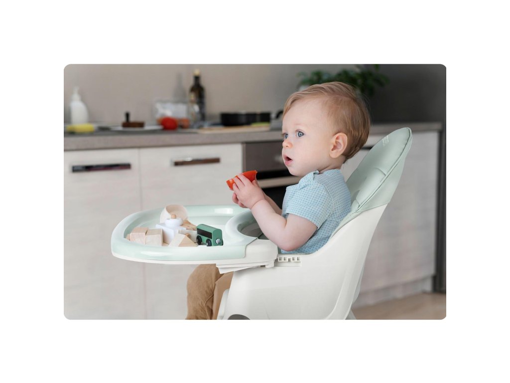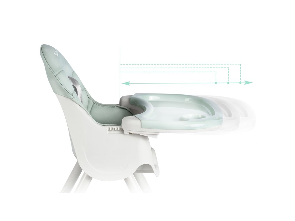 Stolica vam omogućuje slobodno podešavanje udaljenosti između pladnja i djeteta. Također ga možete u bilo kojem trenutku potpuno ukloniti.