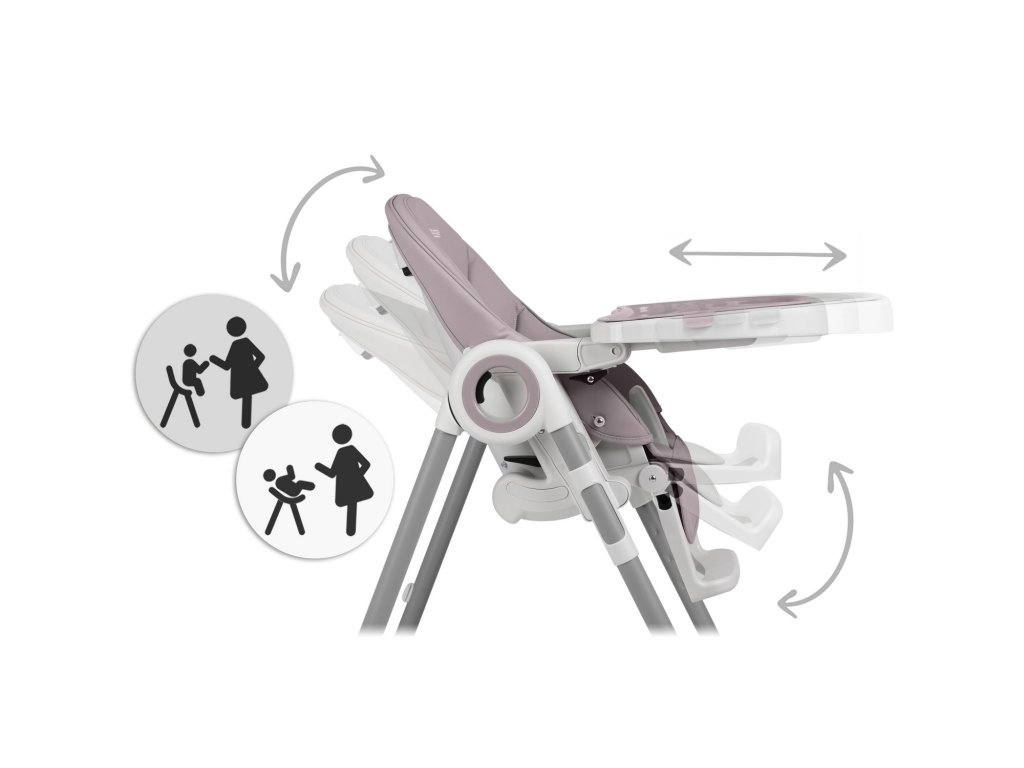 - možete podesiti položaj pladnja ili ga ukloniti kada želite izvaditi dijete iz visoke stolice ili ga prisloniti stolu tijekom obiteljske večere