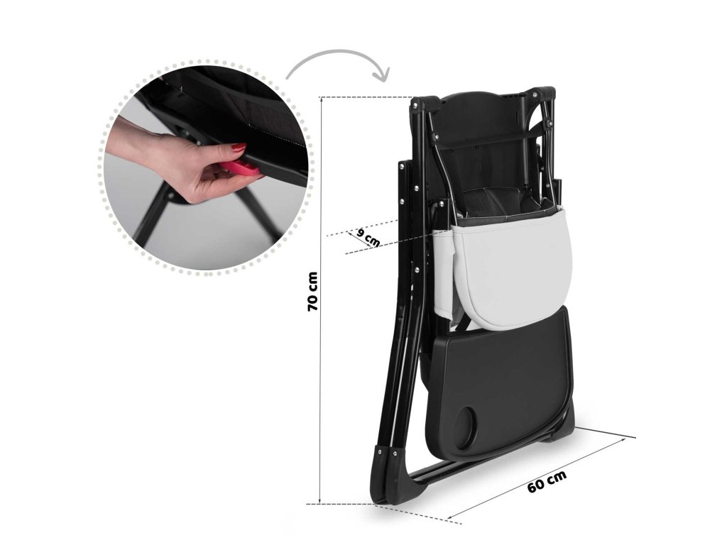 Dječja stolica za hranjenje kada se sklopi zauzima malo prostora , stane u ormar ili odabrani kutak.