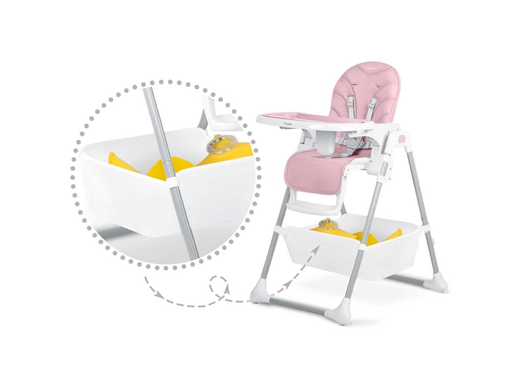 Stolica omogućuje slobodno podešavanje udaljenosti pladnja od djeteta. Također se u svakom trenutku može potpuno demontirati.