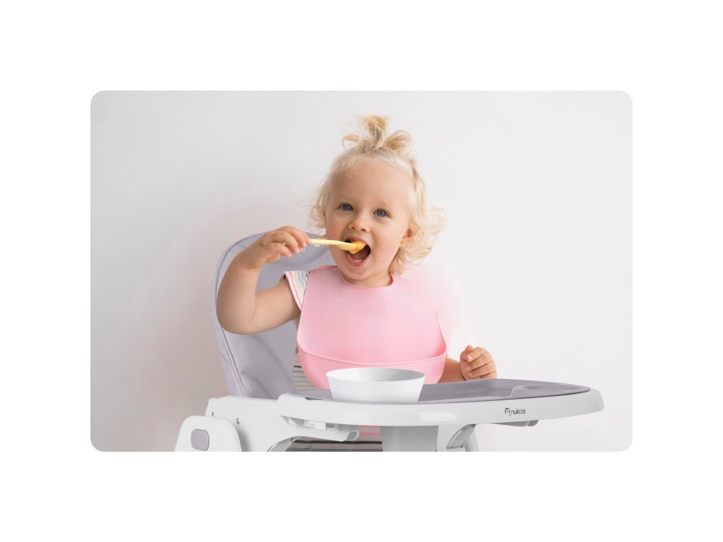 Stolica omogućuje proizvoljno podešavanje udaljenosti pladnja od djeteta. Također ga možete u bilo kojem trenutku potpuno demontirati.