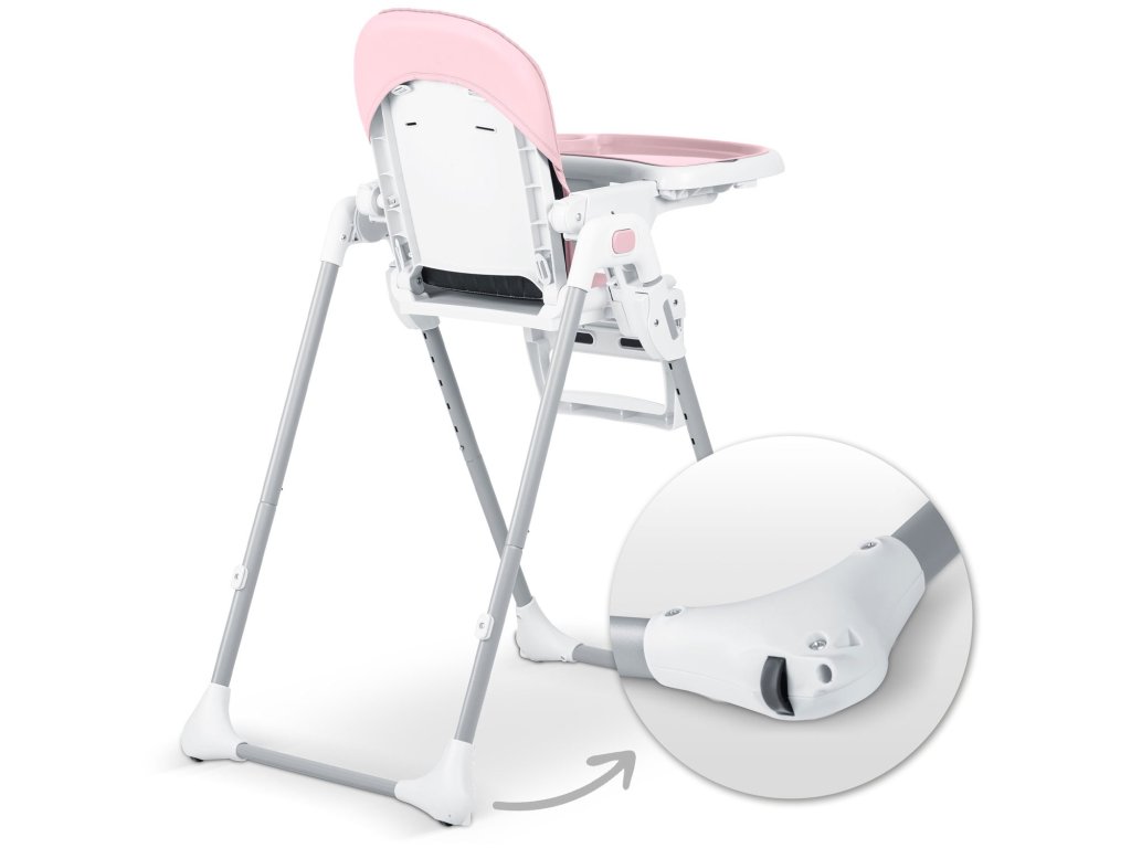 Visoka stolica omogućuje vam slobodno podešavanje udaljenosti pladnja od djeteta. Također se može potpuno ukloniti u bilo kojem trenutku.