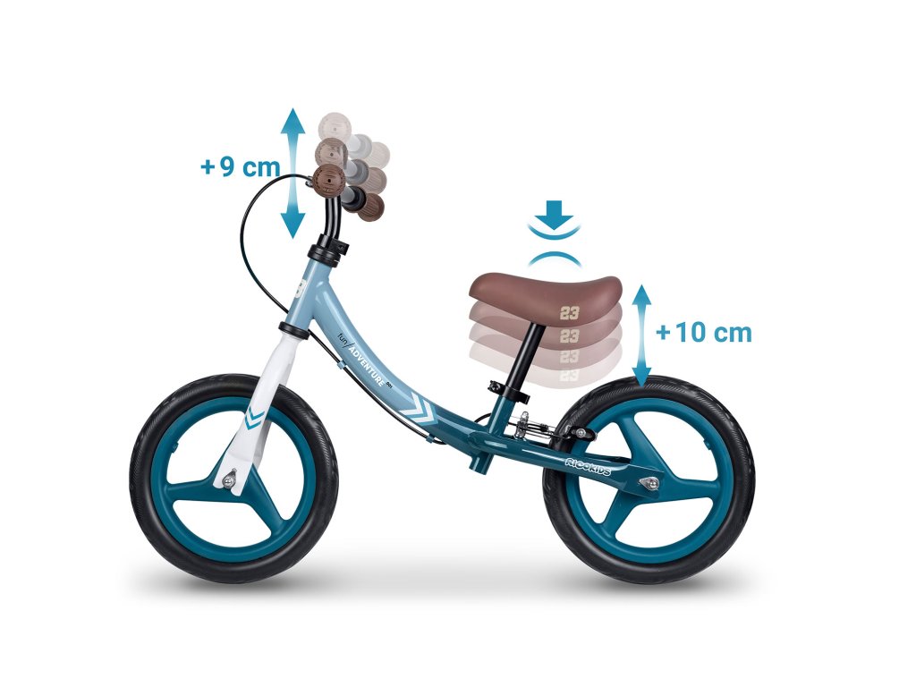 - Dulje vrijeme korištenja: mogućnost podešavanja visine sjedala do 10 cm omogućuje prilagođavanje bicikla promjenjivoj visini djeteta, zahvaljujući čemu može biti korišten dulje.