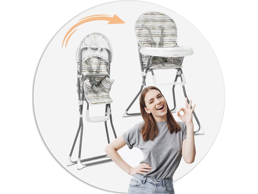 Sigurnosni pojasevi s praktičnom kopčom osiguravaju potpunu sigurnost i zaštitu djeteta od neželjenog spuštanja stoličke.