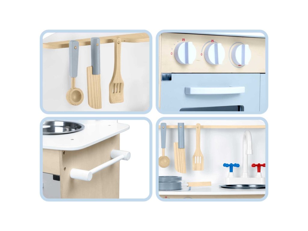 Najnoviji model drvene kuhinje od Ricokids pružit će vašem djetetu zabavu i imati veliki utjecaj na njegov razvoj. Zahvaljujući interaktivnim elementima, dijete naučit će samostalnosti , suradnji i razviti svoju kreativnost .