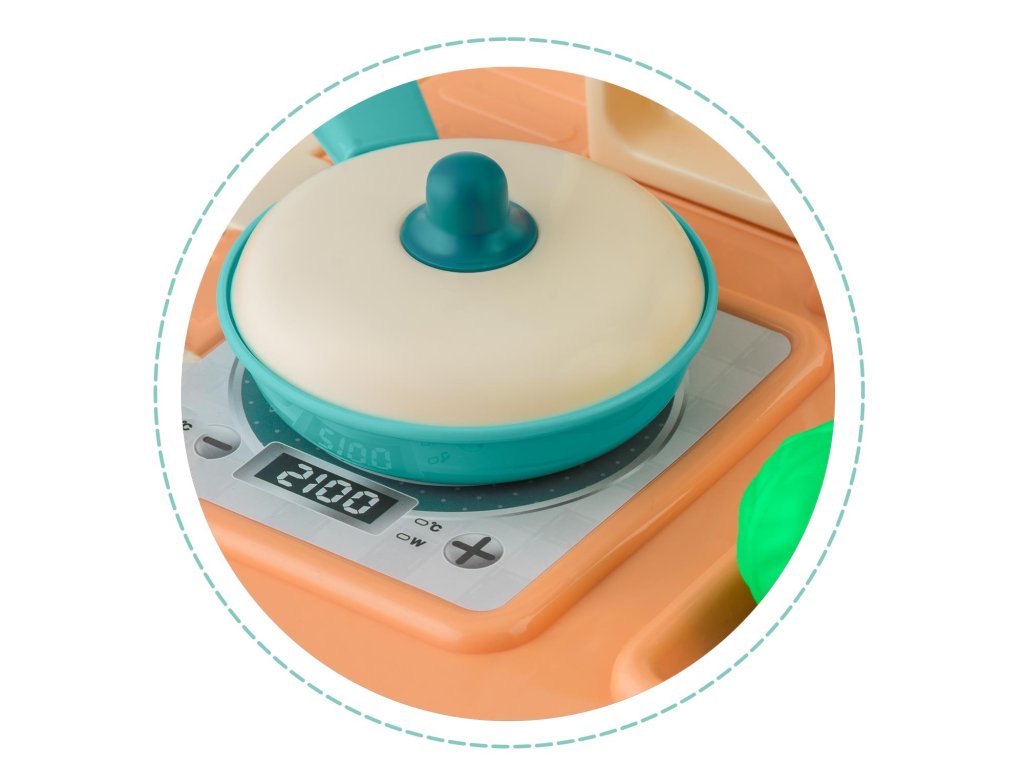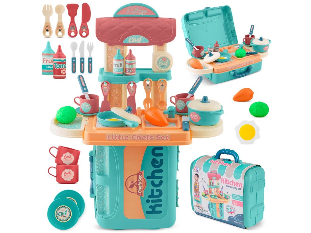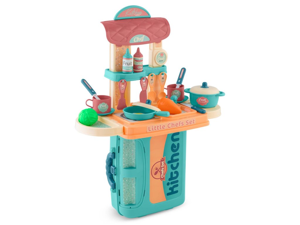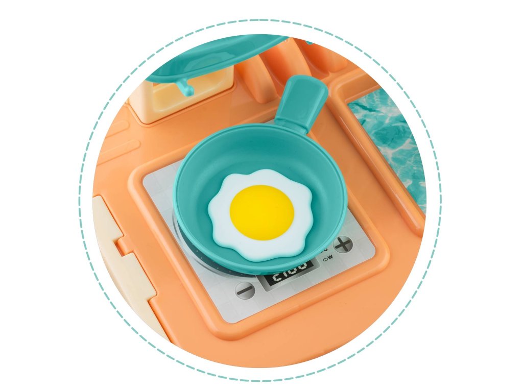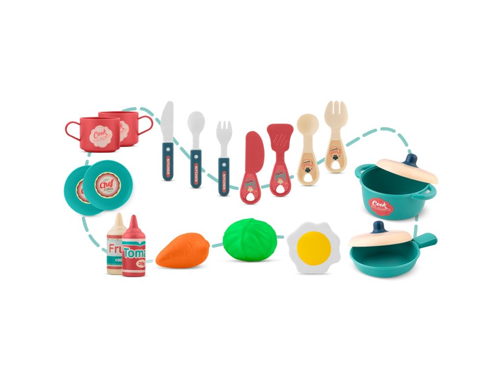 Kuhinja uključuje brojne dodatke: pribor za jelo i lopatice 7 kom, šalice 2 kom, podložak za čaše (može se koristiti i kao tanjur) 2 kom, kajgana 1 kom, lonac 1 kom, tava 1 kom, poklopci 2 kom. , voćni umak 1 kom, kečap 1 kom, povrće 2 kom (zelena salata + mrkva).