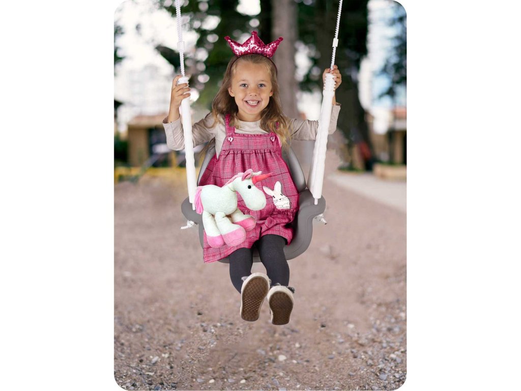 Ljuljačka je ergonomska i osigurava čvrsto držanje djeteta. Zbog korištenja čvrstih materijala, izdržat će dugi niz godina.