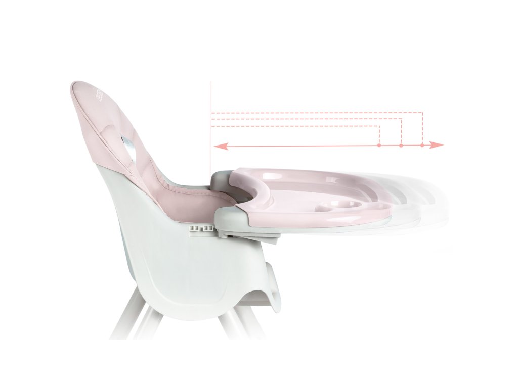 Stolica vam omogućava slobodno podešavanje udaljenosti između pladnja i djeteta. Također se može u potpunosti ukloniti u bilo kojem trenutku.