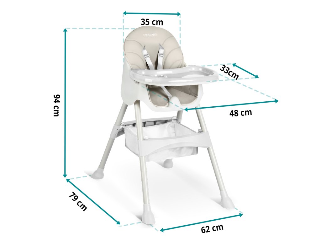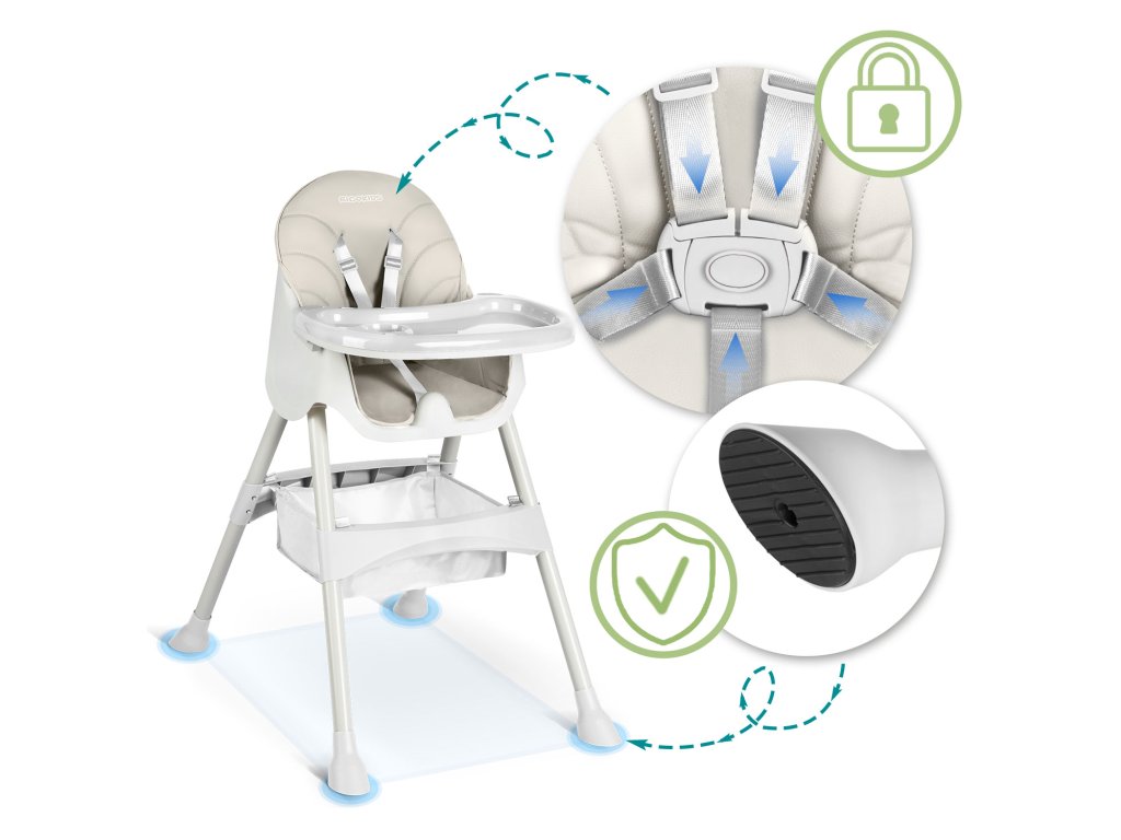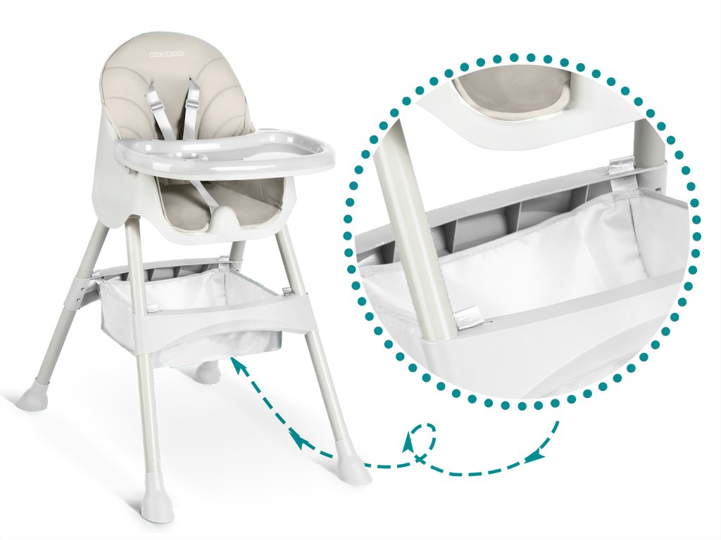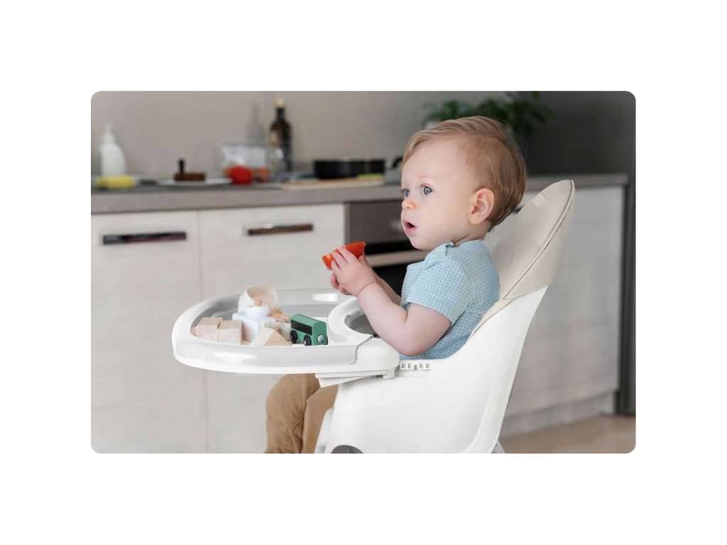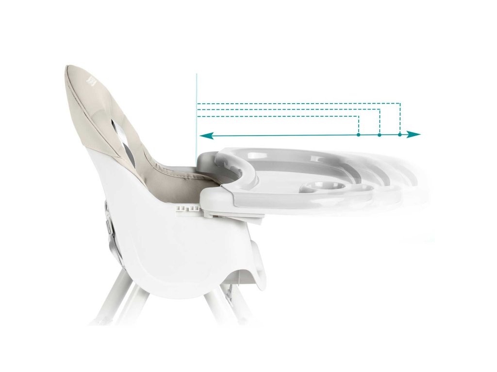 Stolica vam omogućuje slobodno podešavanje udaljenosti između posude i djeteta. Također se može u bilo kojem trenutku potpuno ukloniti.