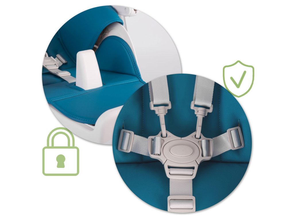 - Dodatna sigurnost , koja sprječava nenamjerni pad djeteta sa stolice. Mogu se potpuno rastaviti kada više nisu potrebni.