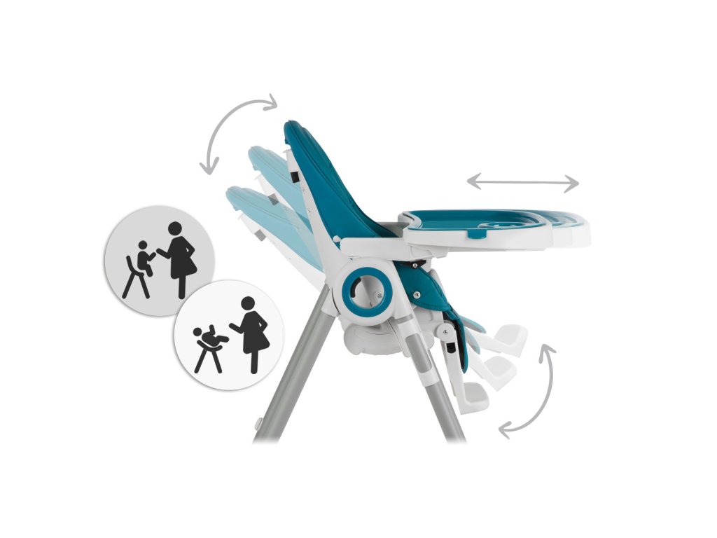 - možete podesiti položaj pladnja ili ga ukloniti kad želite izvaditi svoje dijete iz stolice ili ga privesti stolu za obiteljsku večeru.