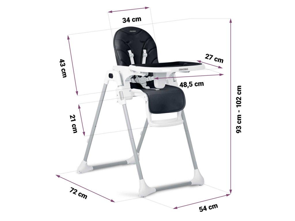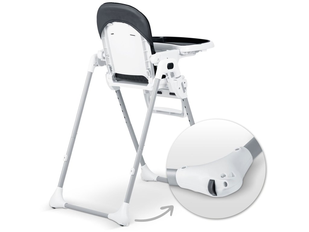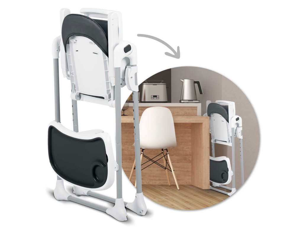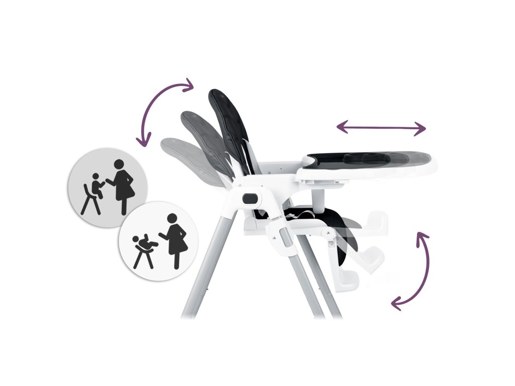 Visoka stolica omogućuje prilagođavanje udaljenosti pladnja od djeteta. Može se također u bilo kojem trenutku potpuno demontirati.