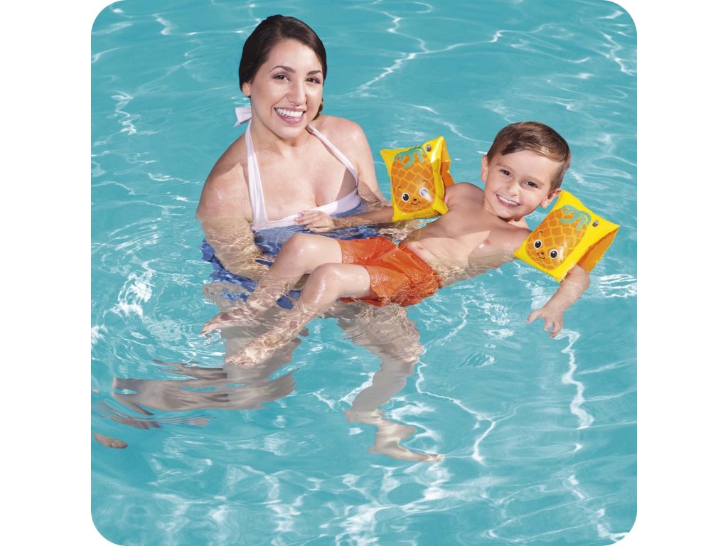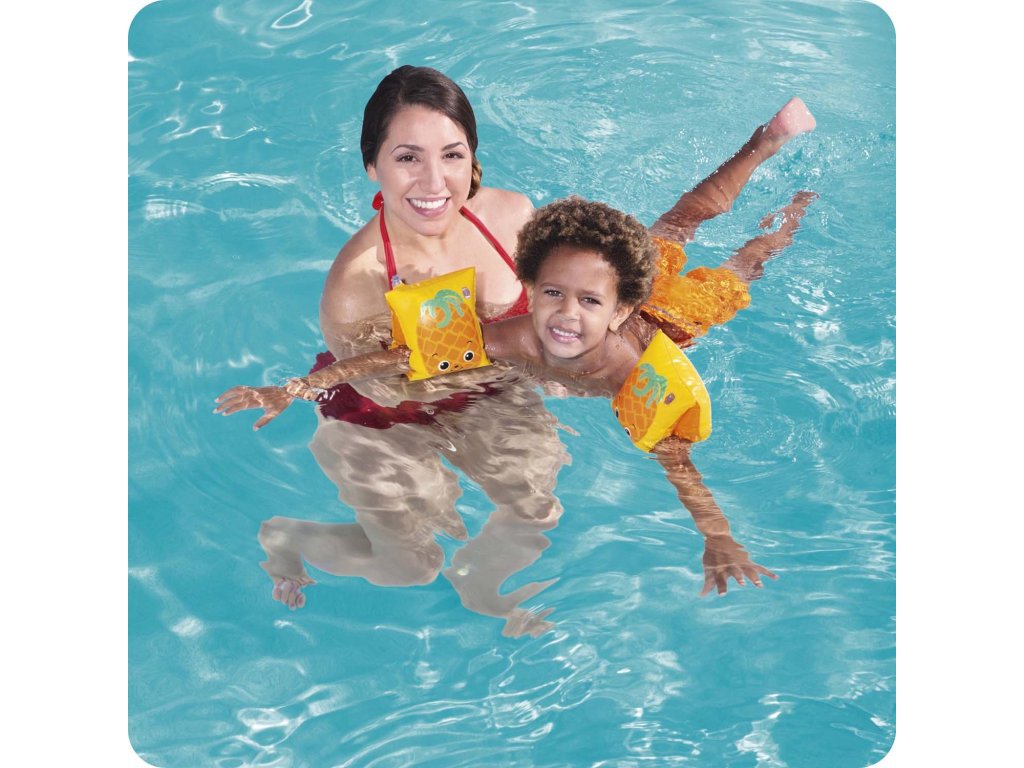 Rukavići za plivanje za djecu VOĆE BESTWAY 32042 HIT LJETA! Zabava u vodi jedan je od najboljih načina za djecu za aktivnu igru na svježem zraku. Prvi kontakt s vodom je nevjerojatno iskustvo za Vaše dijete, stoga je važno voditi računa o njegovom dobrobiti. Dječji rukavići za plivanje Bestway su dvokomorni, zahvaljujući čemu dijete slobodno drže na vodi. Njihove dimenzije su 23 x 15 cm. Glavne značajke: prekrasna grafika po izboru: ananas jagoda 2 zračne komore Tehnički podaci: Dimenzije: 23 x 15 cm Zračne komore: 2 Težina: 0,1 Preporučena dob: od 3 do 6 godina Upozorenja i informacije o sigurnosti: proizvod namijenjen učenju plivanja nije igračka; proizvod namijenjen učenju plivanja nije spasilačka oprema, ne štiti od utapanja; za korištenje u vodi na dubini na kojoj dijete osjeća dno pod nogama i pod izravnim nadzorom odrasle osobe; pravilno napuhavanje i korištenje opreme neophodno je za osiguranje sigurnosti, ne napuhujte previše; obratite pozornost na to je li sigurnosni ventil čvrsto zatvoren i jesu li šavovi cijeli; ne grizite niti žvačite proizvode, zbog mogućnosti ugriza komadića koji mogu prouzročiti opasnost od gušenja; težinski raspon 18-30 kg, dob od 3 do 6 godina;Additional parameters