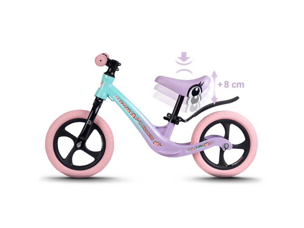 - Dulje razdoblje korištenja: mogućnost podešavanja visine sjedala do 8 cm omogućuje prilagodbu bicikla promjenjivoj visini djeteta, zahvaljujući čemu se može koristiti dulje vrijeme.